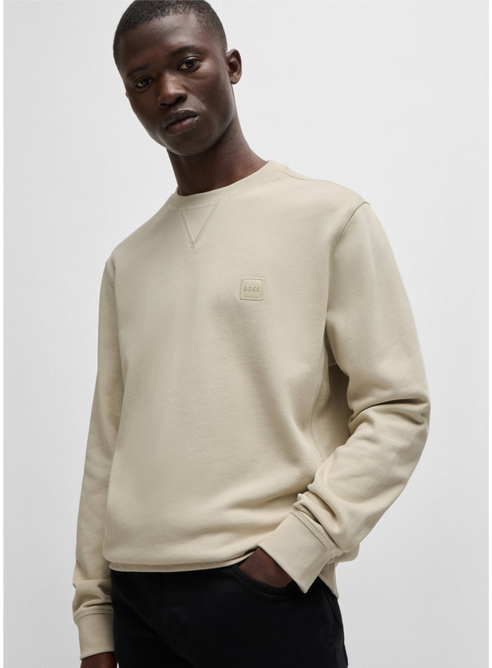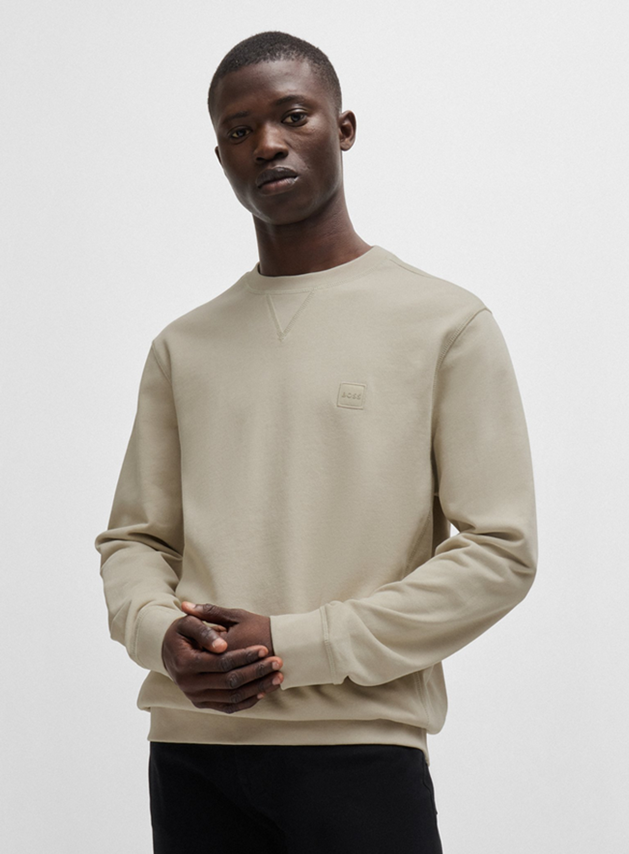 Een regular-fit sweatshirt van BOSS Orange in een ontspannen model van badstof met een ton-sur-ton logopatch links op de borst.