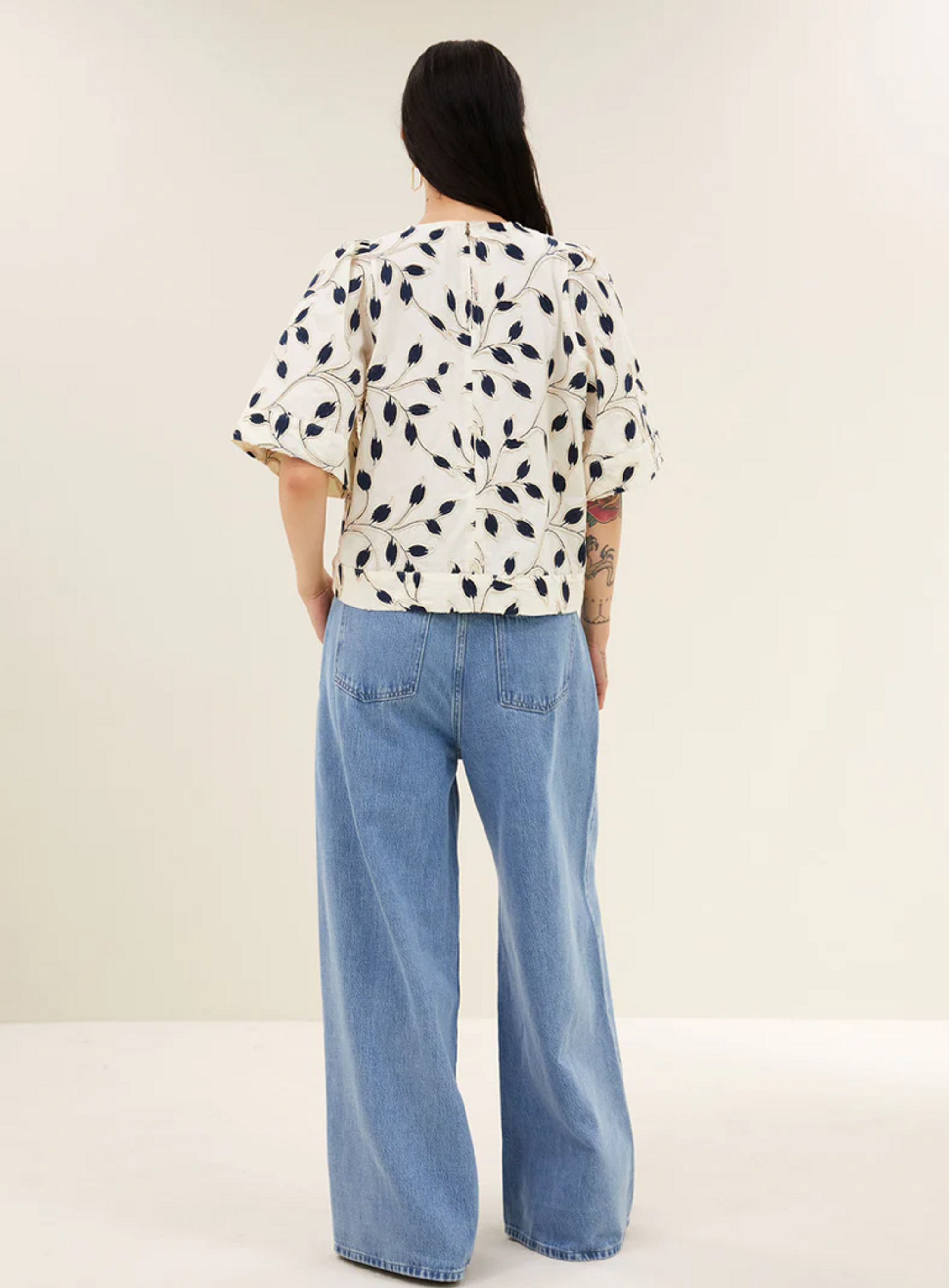 De olivia botanic blouse van het merk By Bar combineert een casual stijl met een losvallende pasvorm en elegante pofmouwen. De blouse heeft een comfortabele ronde halslijn en een handige ritssluiting. Het subtiele borduurwerk geeft een verfijnde uitstraling, perfect voor een moeiteloze en stijlvolle look. De ellebooglange mouwen maken het een veelzijdige keuze voor diverse gelegenheden.