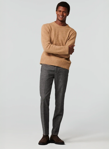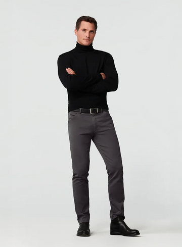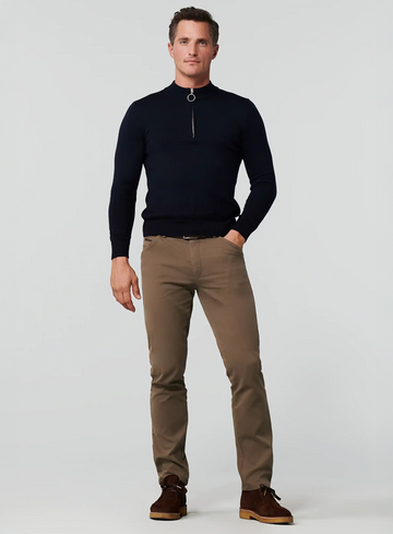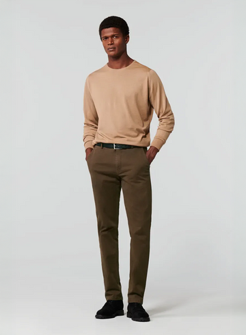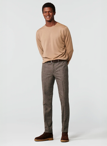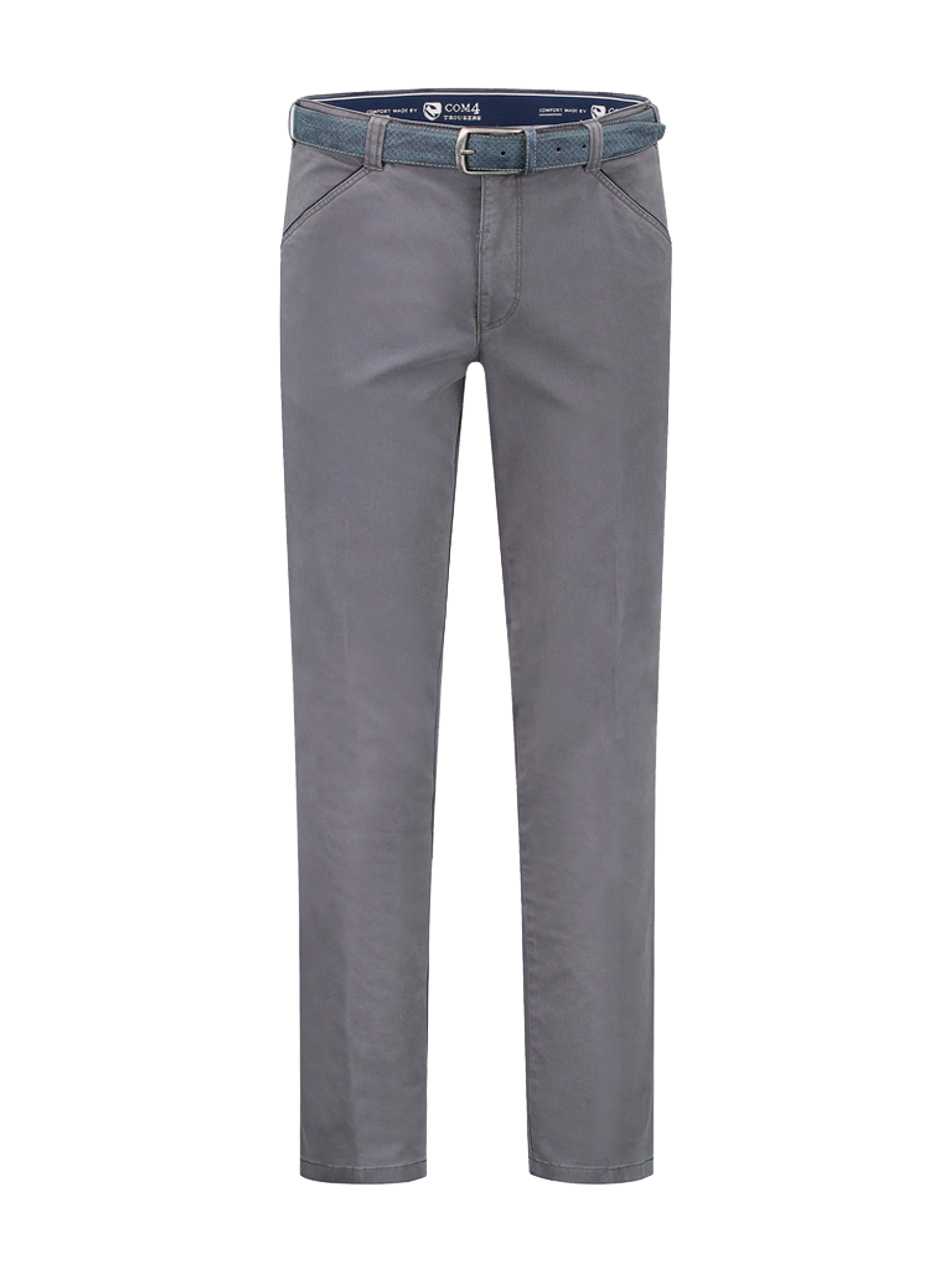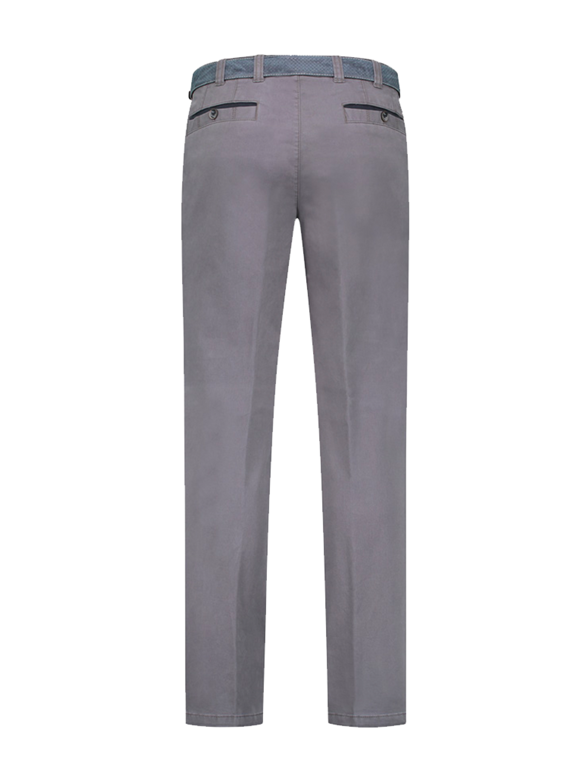 Het model ‘Wing Front’ is een comfortabele en semi-sportieve broek met een moderne pasvorm. De broek heeft een voetwijdte van 38 cm en kenmerkt zich door de schuine zak. Naast de seizoenscollectie in verschillende prints en kleuren, kunt u kiezen uit een brede collectie in katoen, denim en wol. Het model Wing Front zit extreem comfortabel door de stabiele elastische stretch-band aan de binnenzijde van de broek. De broek is voorzien van een rubberen hemdstopper zodat uw overhemd niet schuift. Model Wing Front wordt altijd met luxe bijpassende riem geleverd.