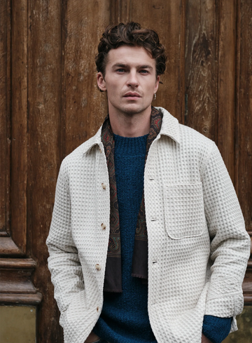 Jacket Sawyer van het merk Dstrezzed. Gemaakt van rijke damaststof, is dit omkeerbare, oversized exemplaar gemaakt om de aandacht te trekken. Of je nu opvalt of opvalt, dit is jouw go-to voor een onverbloemde stijl. Durf een statement te maken.