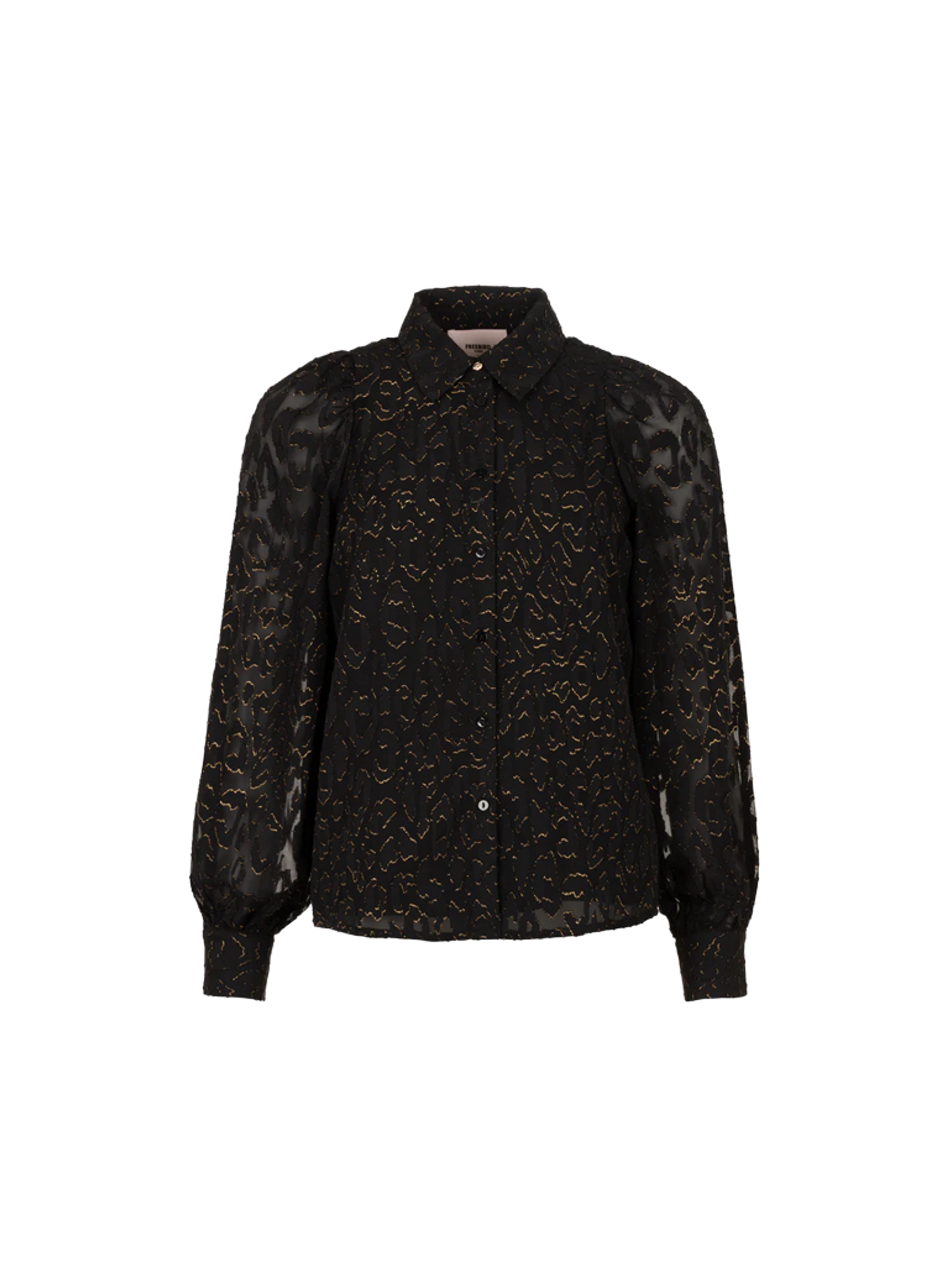 Een chique blouse van het merk Freebird met een vrouwelijke en elegante uitstraling. Deze blouse is gemaakt van een luxe woven jacquard kwaliteit met een subtiel panterpatroon, wat zorgt voor een verfijnde textuur en een stijlvolle glans. De vallende ballonmouwen geven het ontwerp een speelse, maar elegante touch, terwijl de soepelvallende stof zonder stretch zorgt voor een mooie, natuurlijke pasvorm. Perfect voor een feestelijke gelegenheid of een stijlvolle dagelijkse look.