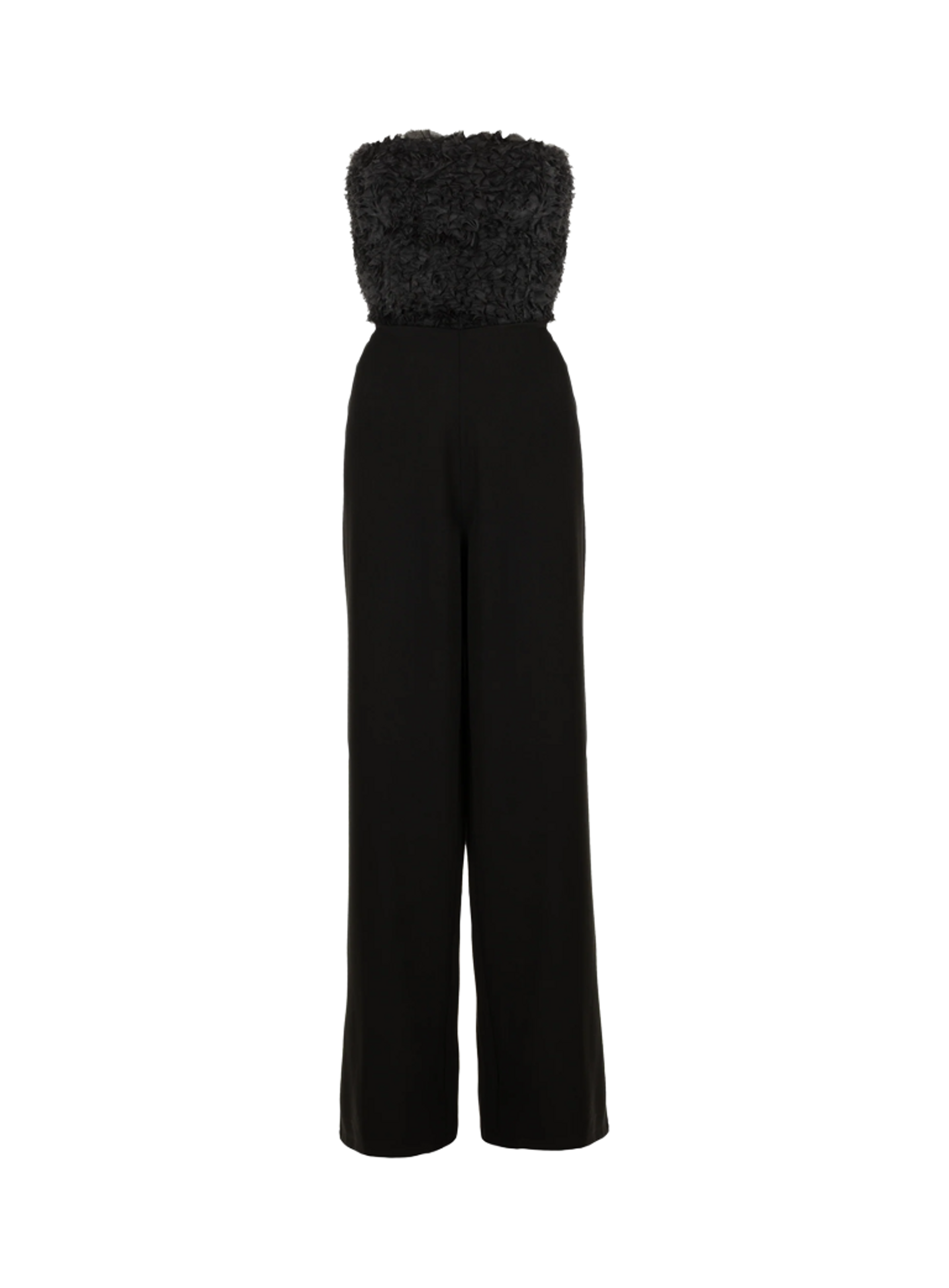 Deze jumpsuit van het merk Freebird combineert elegantie met een opvallende textuur. De onderkant is uitgevoerd in een verfijnde woven kwaliteit die soepel valt en zorgt voor een elegante look. De bovenkant is gemaakt van 3D-mesh met een subtiel bloemenpatroon dat zorgt voor een speels en luxueus effect. Dankzij de aansluitende pasvorm en de bandeau top creëert deze jumpsuit een vrouwelijk silhouet dat perfect is voor feestelijke gelegenheden of een avond uit.