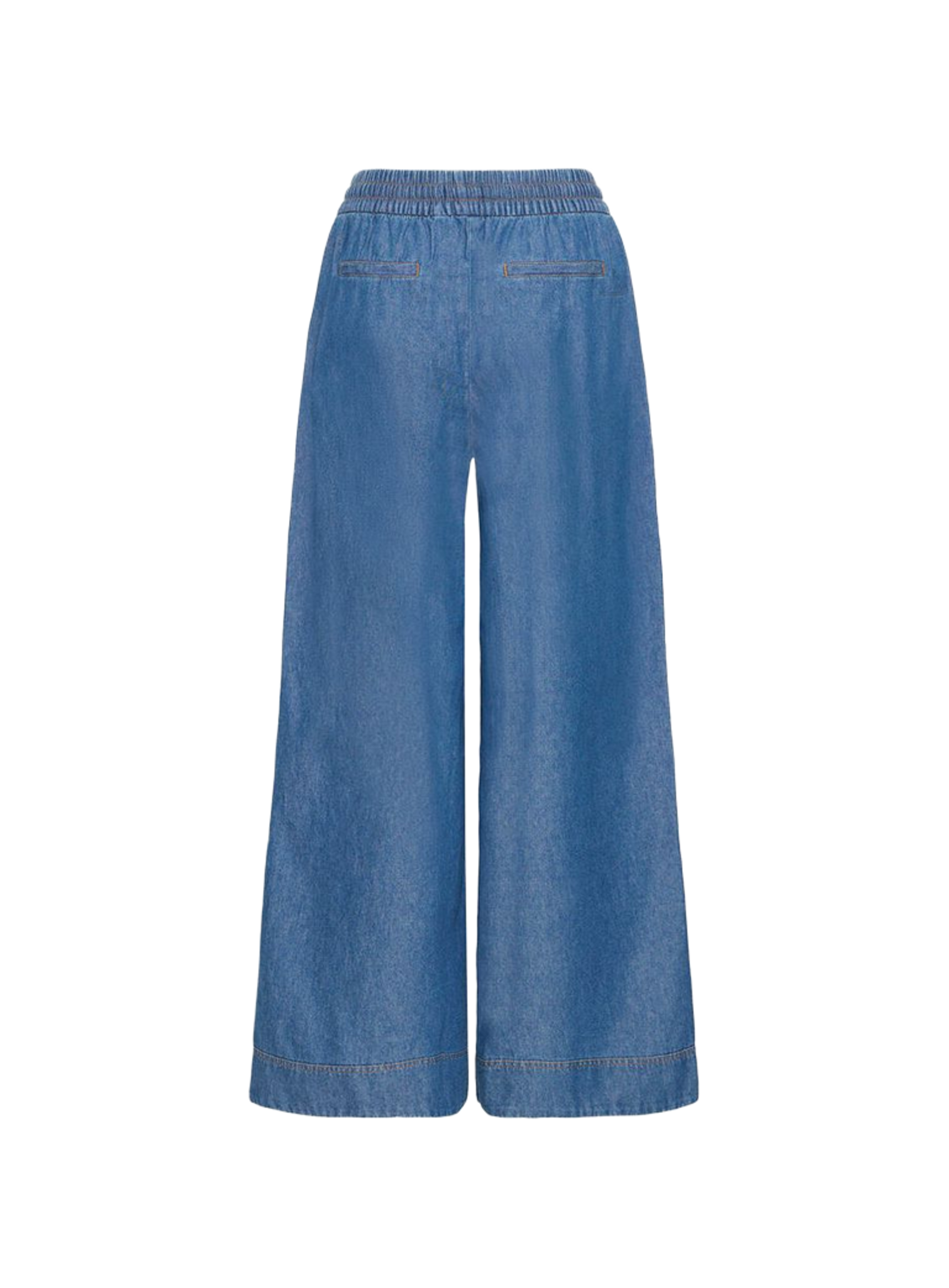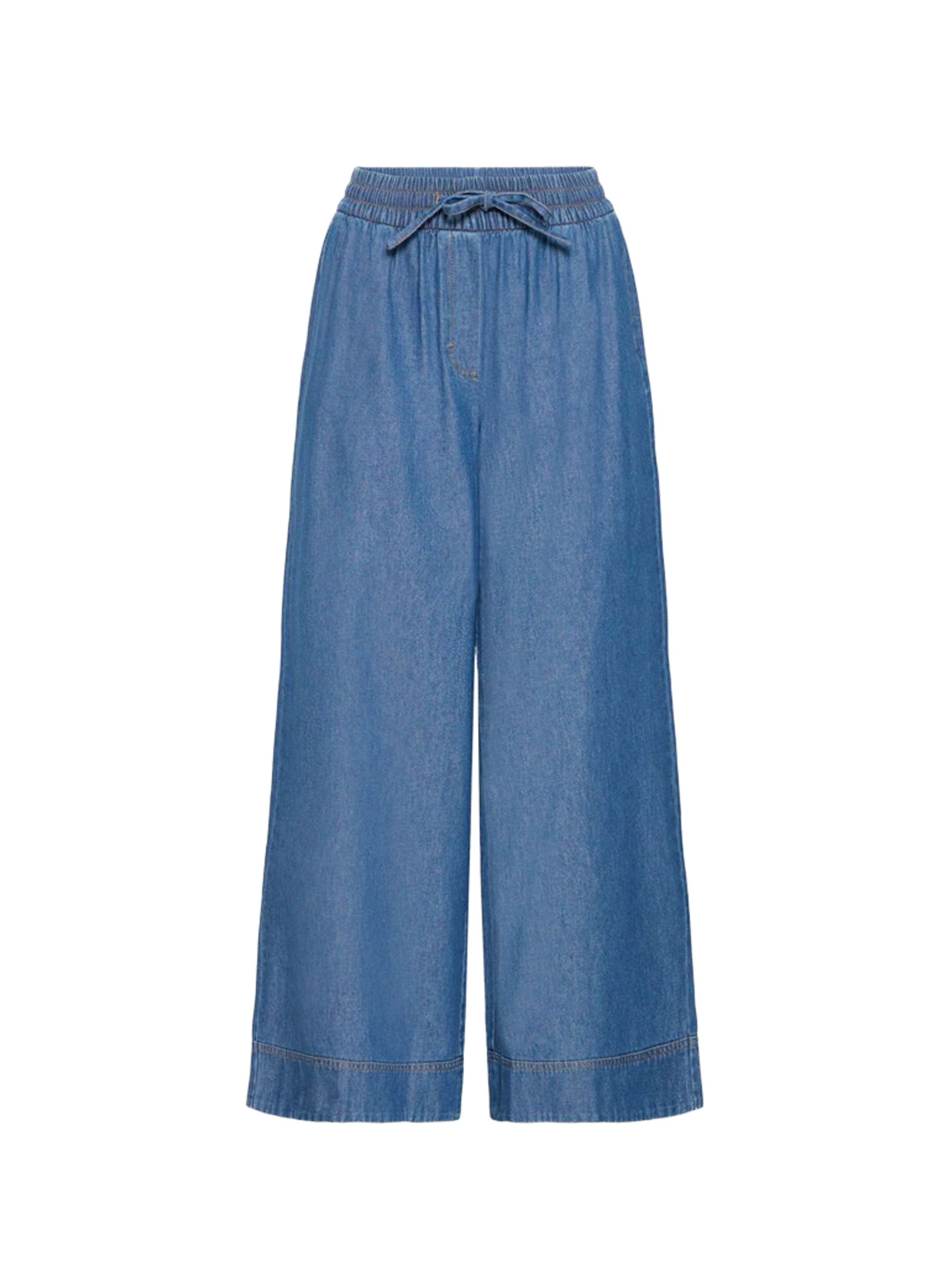 Broek van het merk Ichi, met denim look, wijde pasvorm, elastische tailleband met strik.