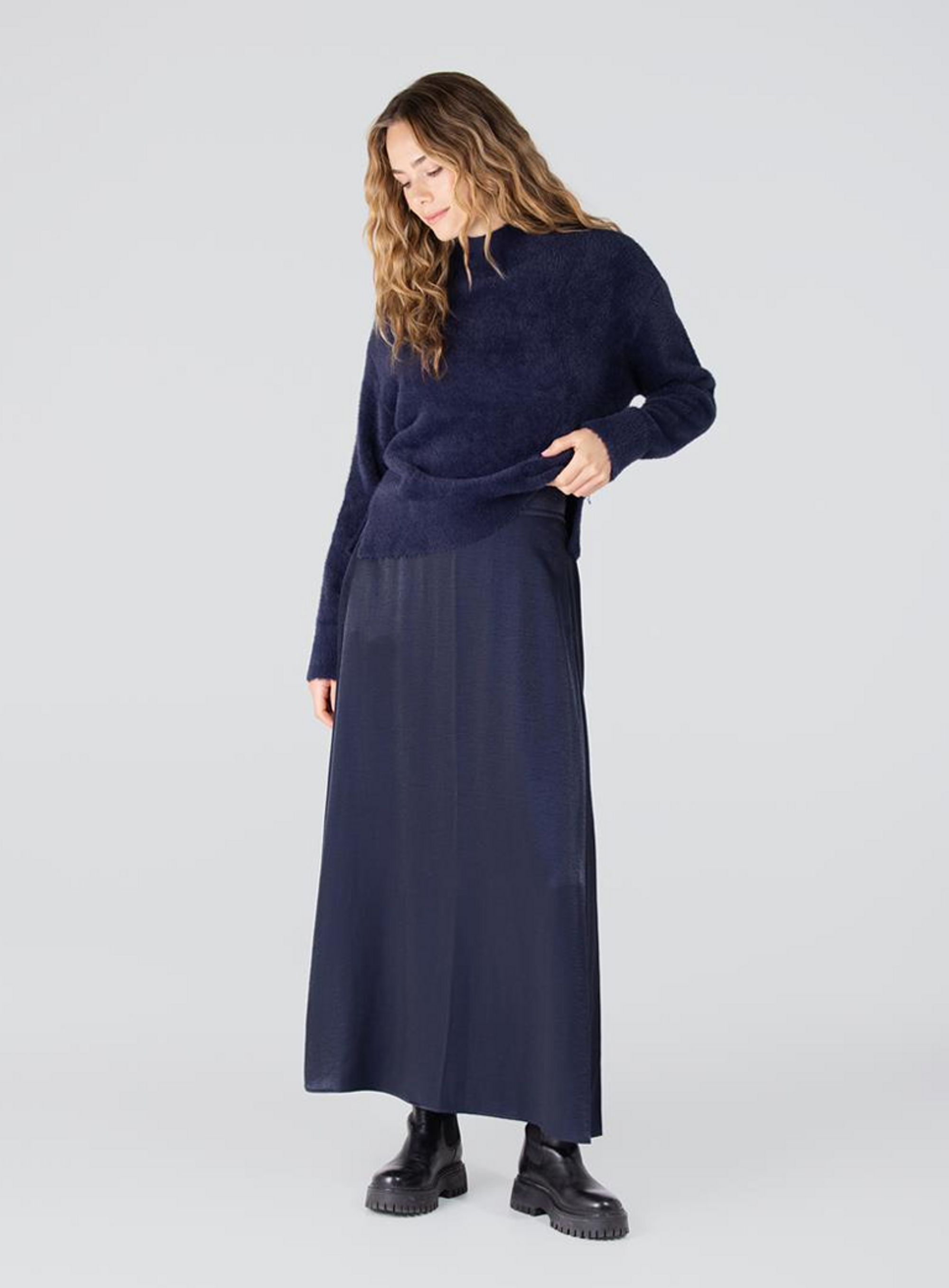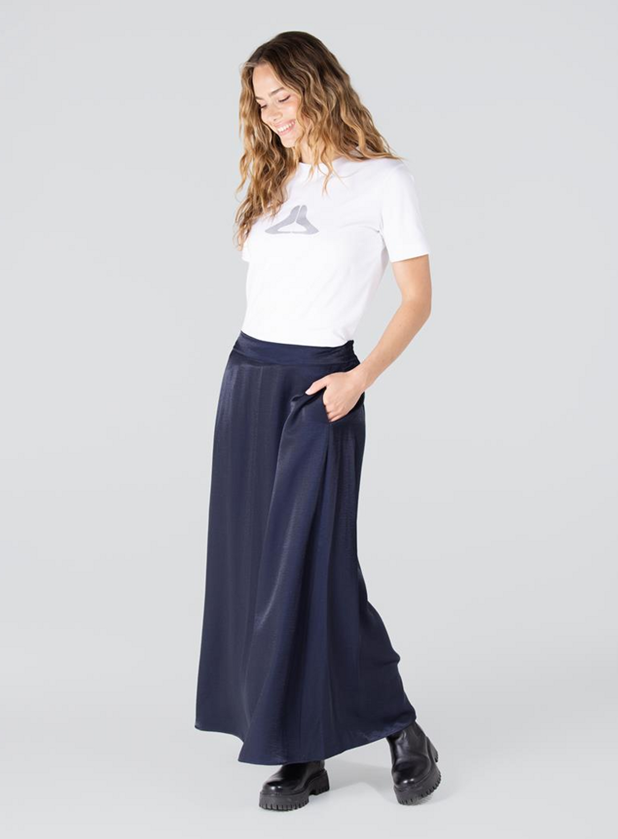 De Dahlia rok van het merk Jansen Amsterdam is de perfecte mix van elegantie en comfort. Deze wijde rok in een luxe glanzende stof heeft een moeiteloos chique uitstraling. De gladde tailleband aan de voorkant zorgt voor een nette look, terwijl het elastiek aan de achterkant extra draagcomfort biedt.