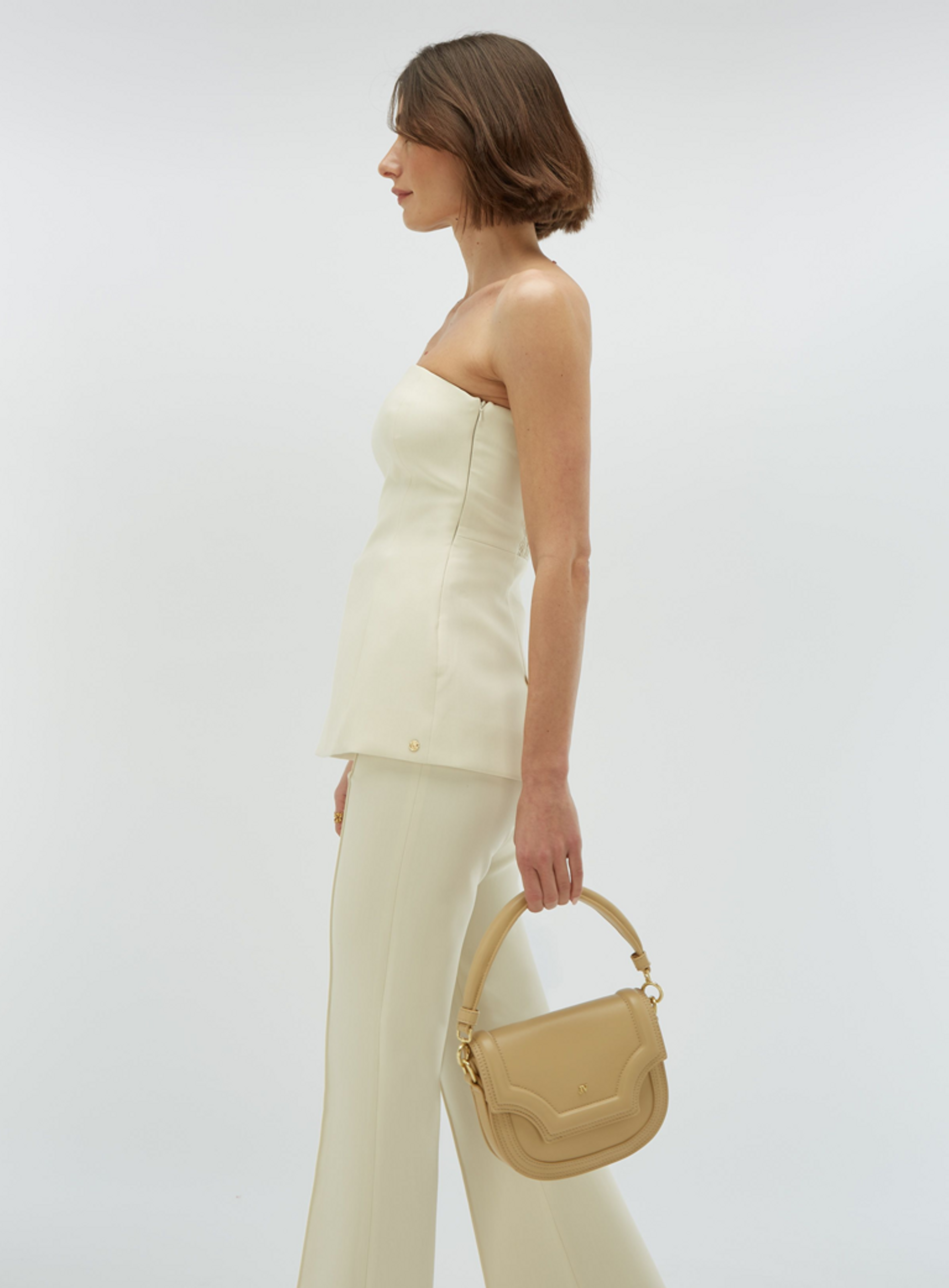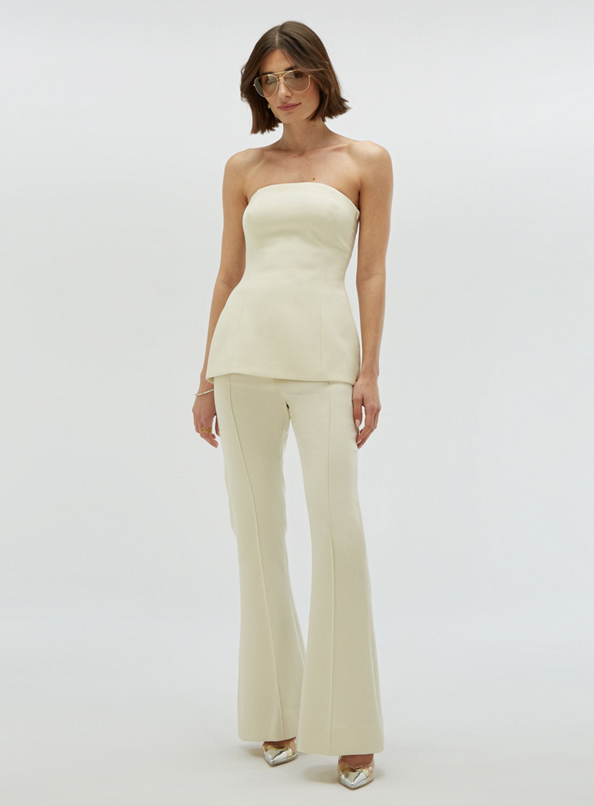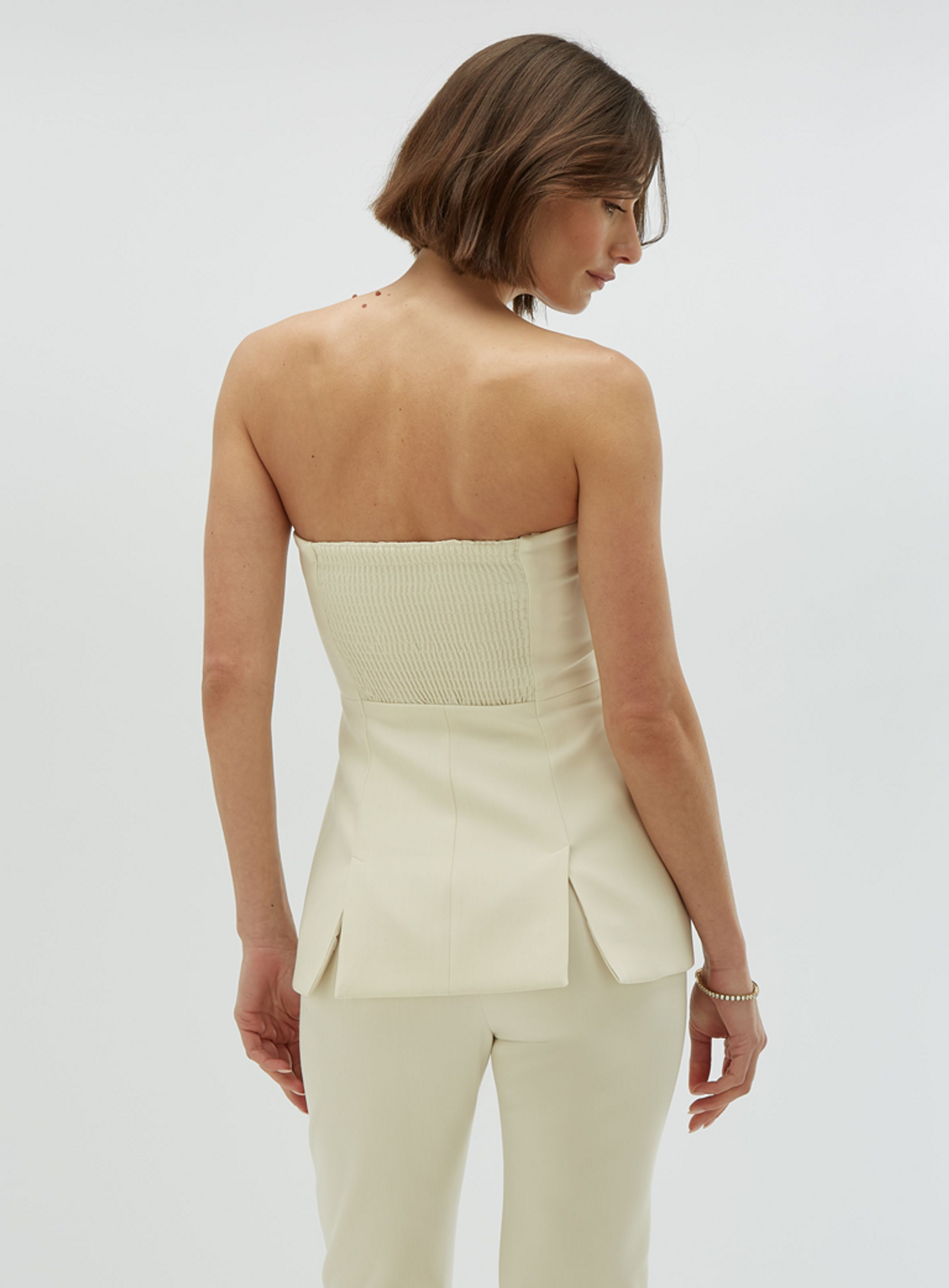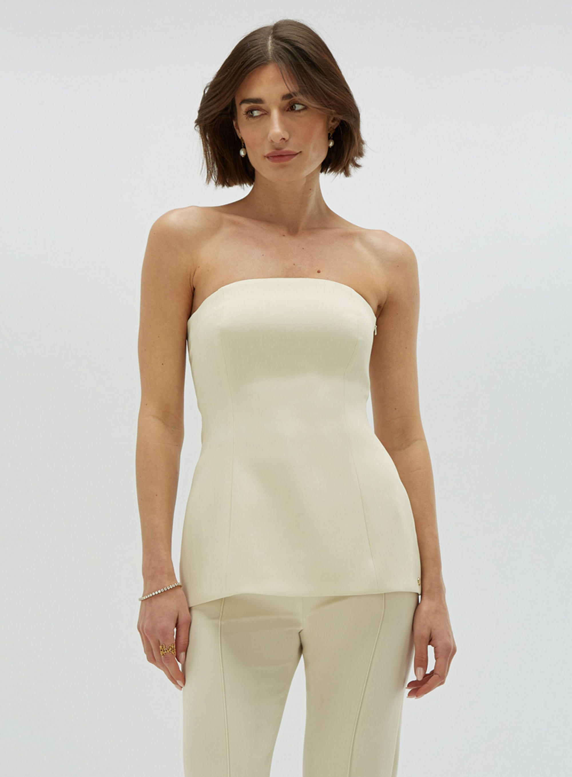 Top Ivy van het merk Josh V. De damestop is een stijlvolle, strapless bustier die perfect te combineren is met de bijpassende Kit broek. De top is nauwsluitend en voorzien van een blinde ritssluiting aan de zijkant en een anti-sliprand aan de binnenkant van de borst. De bustier is gemaakt van een comfortabele kwaliteit. De tijdloze crèmekleur in combinatie met het design maakt deze top een veelzijdige keuze voor zowel formele als casual looks. Stijltip: draag de bustier top onder een blazer of over een blouse tijdens koudere dagen.