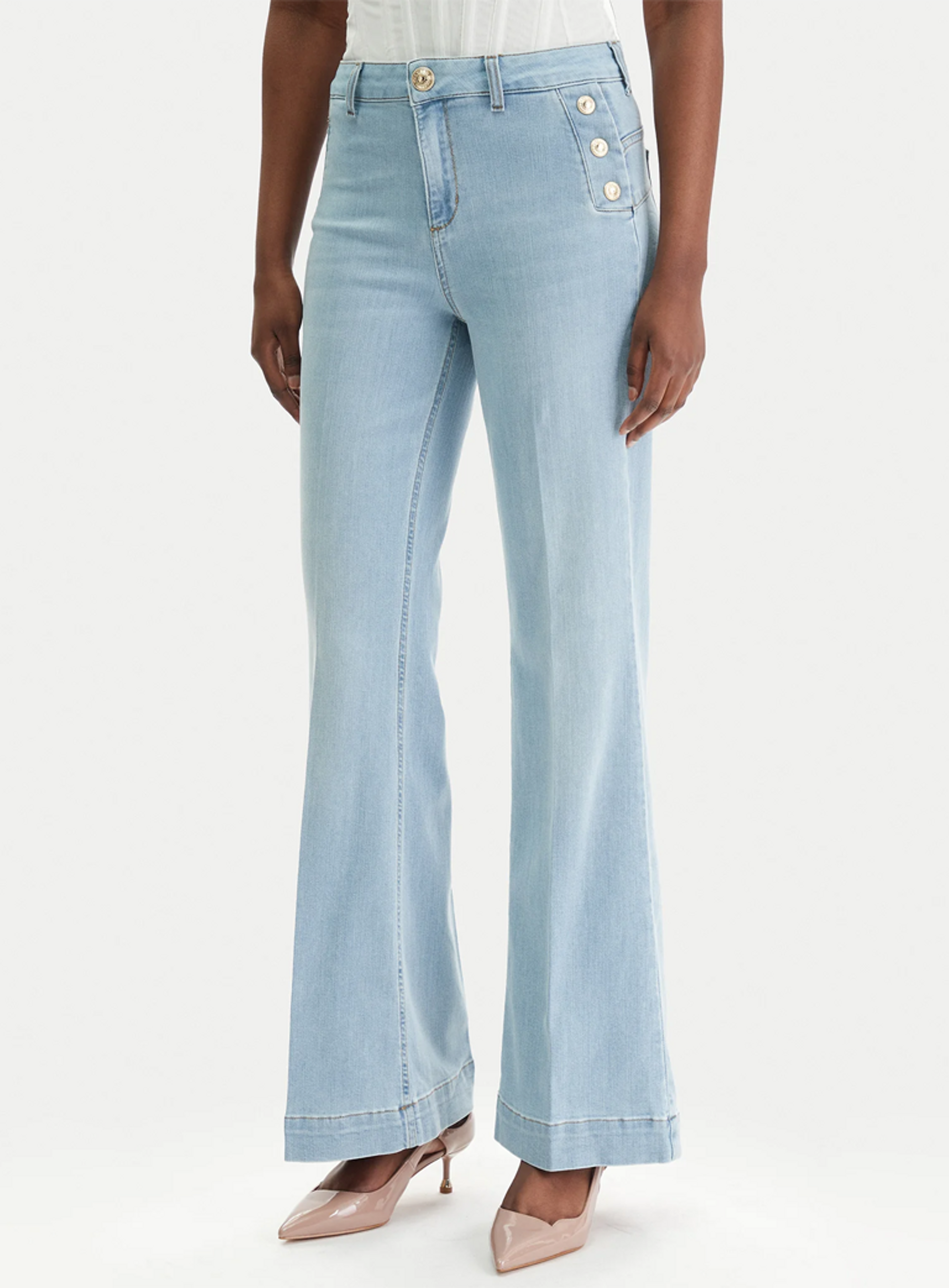Jeans van het merk Liu Jo, met wijde broekspijpen. De broek heeft sierknopen aan de zijkant en achterzakken.