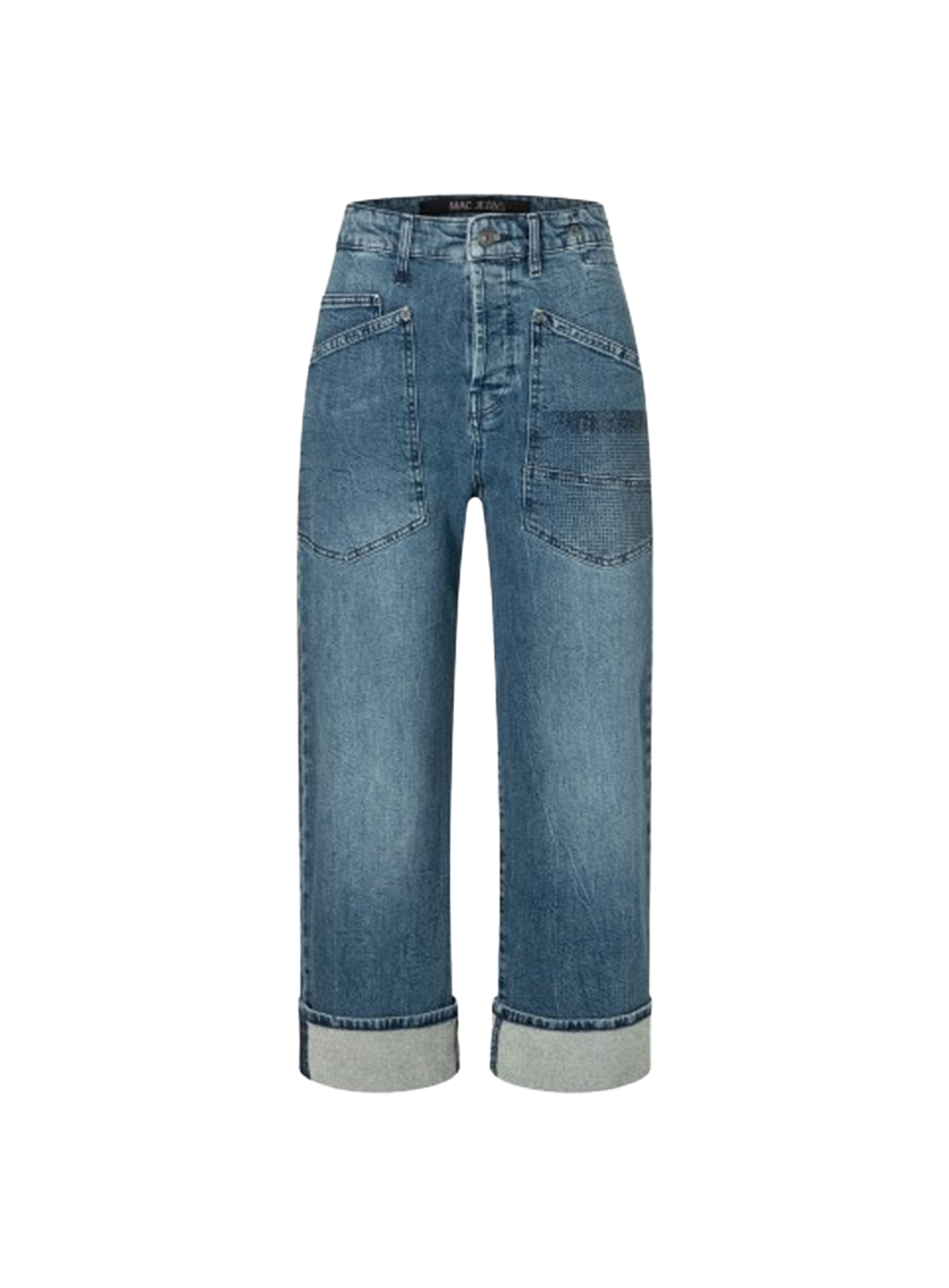 Jeans van het merk MAC. Deze jeans combineert een baggy style met een relaxed fit en een recht, losvallend been voor een nonchalante maar stijlvolle look. Dankzij de variabel draagbare taillehoogte en de brede omslagzoom kun je de broek naar eigen smaak stijlen. Gemaakt van authentieke comfort stretch denim, biedt deze jeans een uitstekende pasvorm en een bijzonder aangenaam draaggevoel. De grote, opgezette zakken, het klassieke five-pocket model en de subtiele strass-details geven de jeans een glamoureuze twist.