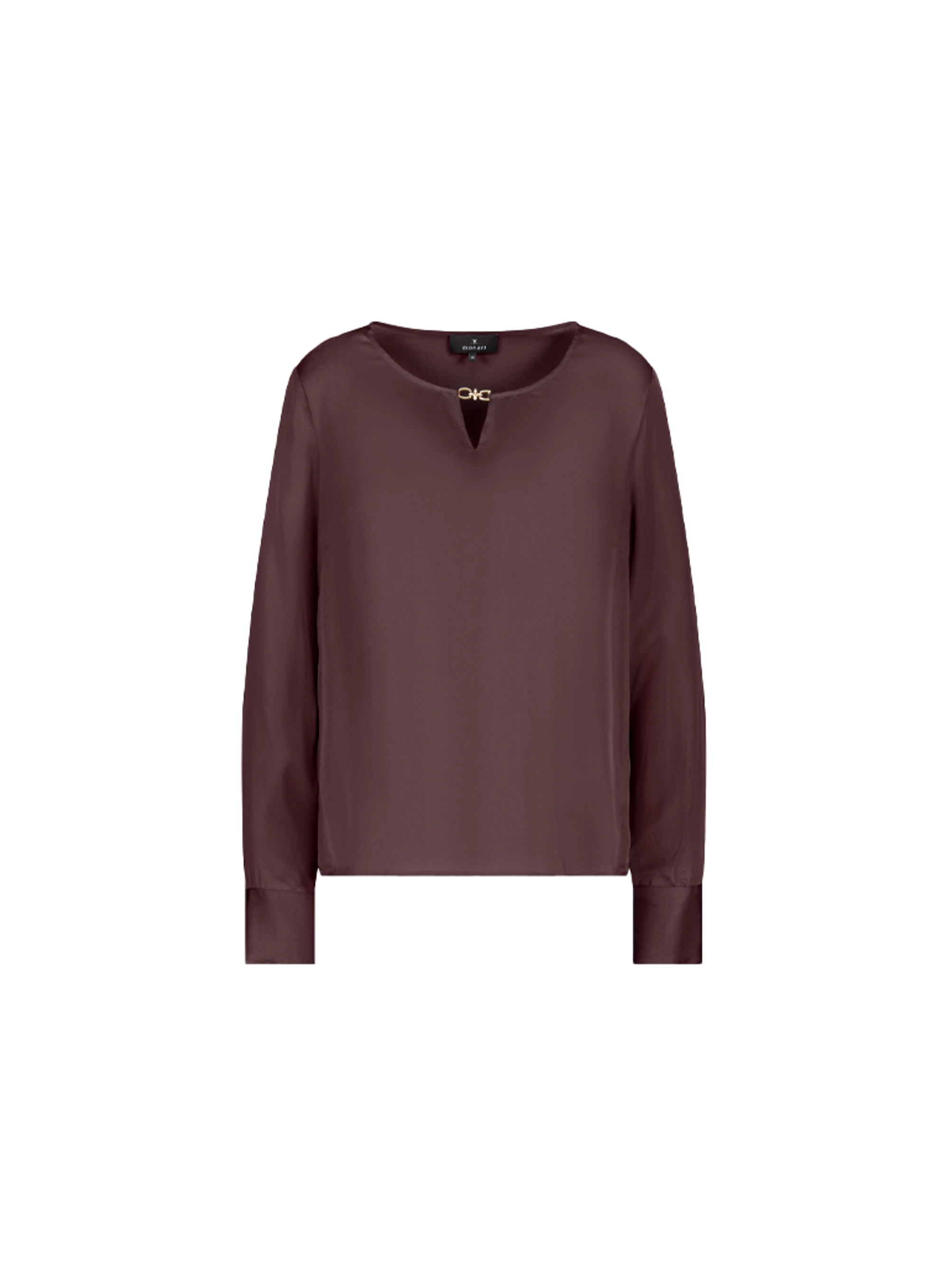 Elegante blouse van het merk Monari van 100% viscose en een licht transparante satijnen stof met een fijn sieraaddetail. Perfect voor elke gelegenheid.