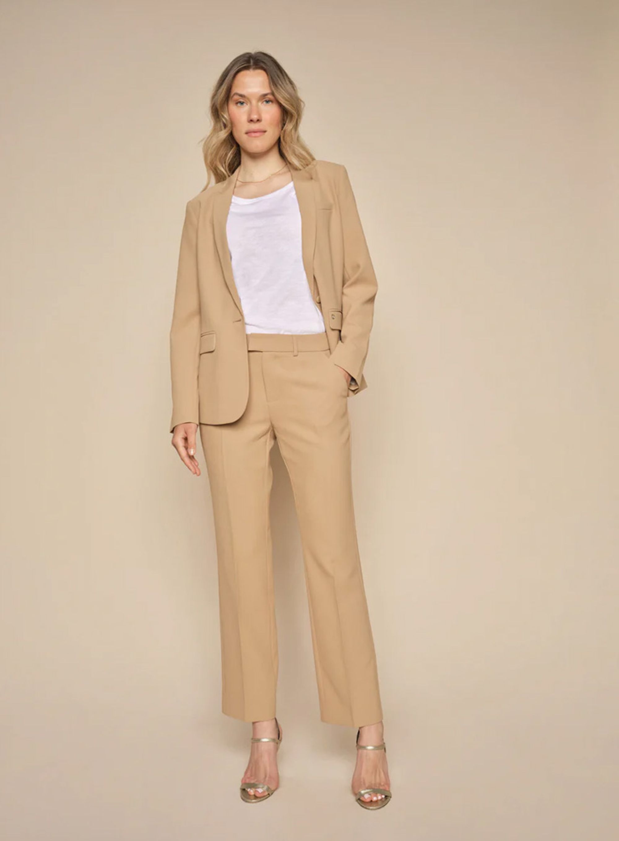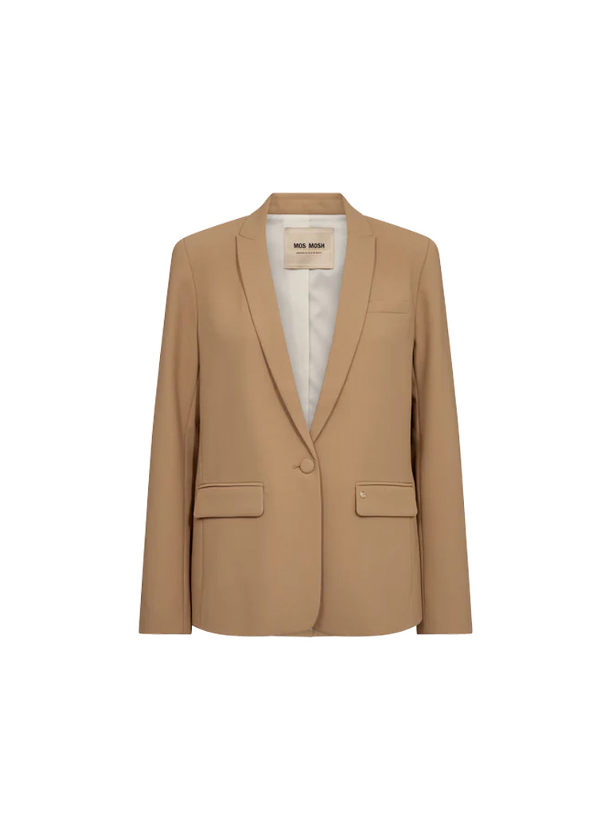 Blazer van het merk Mos Mosh. Deze op maat gemaakte blazer tilt je stijl naar een hoger niveau met zijn getailleerde silhouet, smalle reverskraag en een sluiting met één knoop. De afgeronde zoom voegt een speelse twist toe. Het zachte gevoel maakt de blazer perfect voor lange dagen, terwijl je het met jeans kunt combineren voor een casual, moderne look.