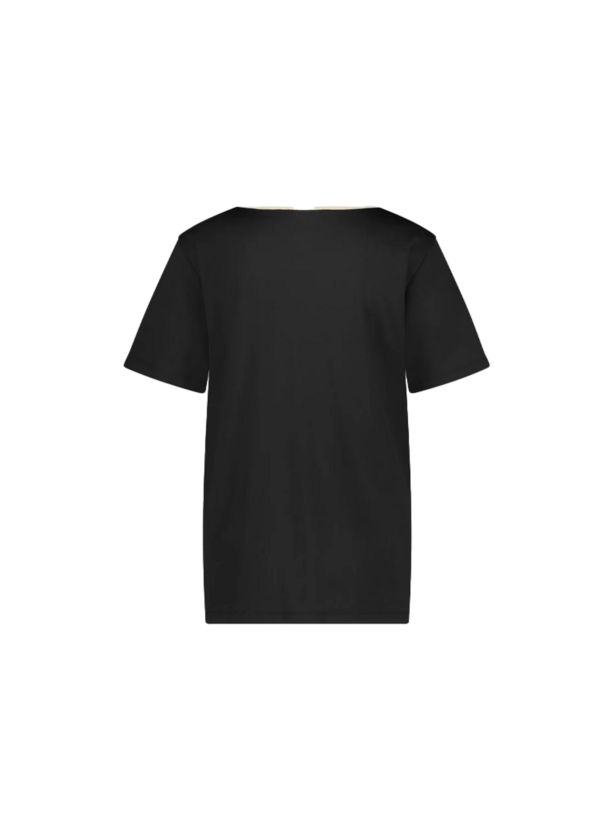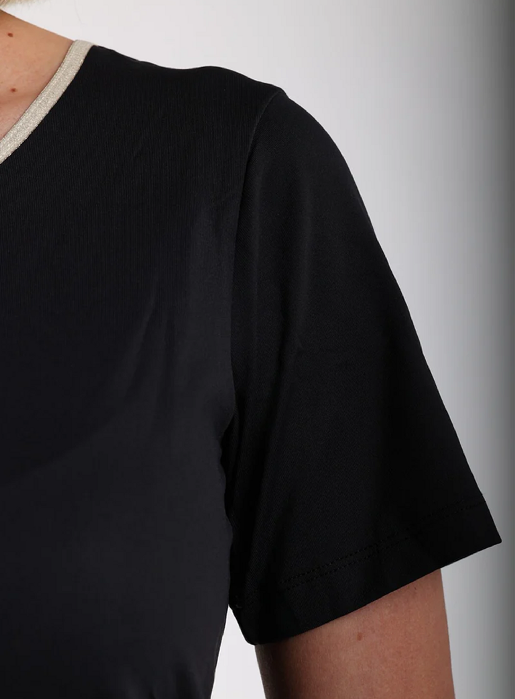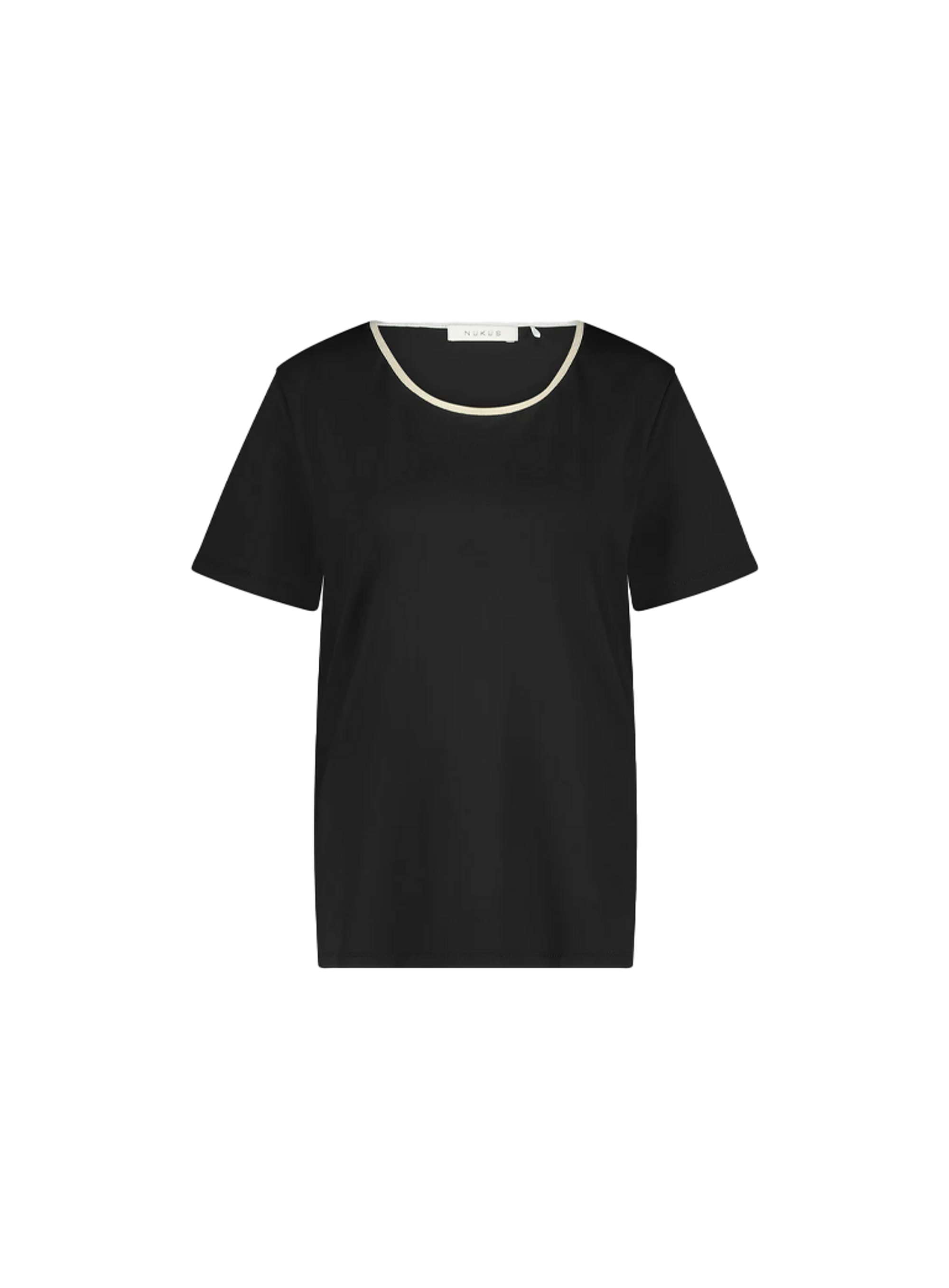 Top Tirza van het merk Nukus. De Tirza top heeft een ronde hals met een subtiel goud lurex randje. Verder heeft de top een aangesloten pasvorm en is de top gemaakt van polyamide en elastaan. Vanwege deze ”travel” kwaliteit is het een zeer comfortabel item om te dragen.
