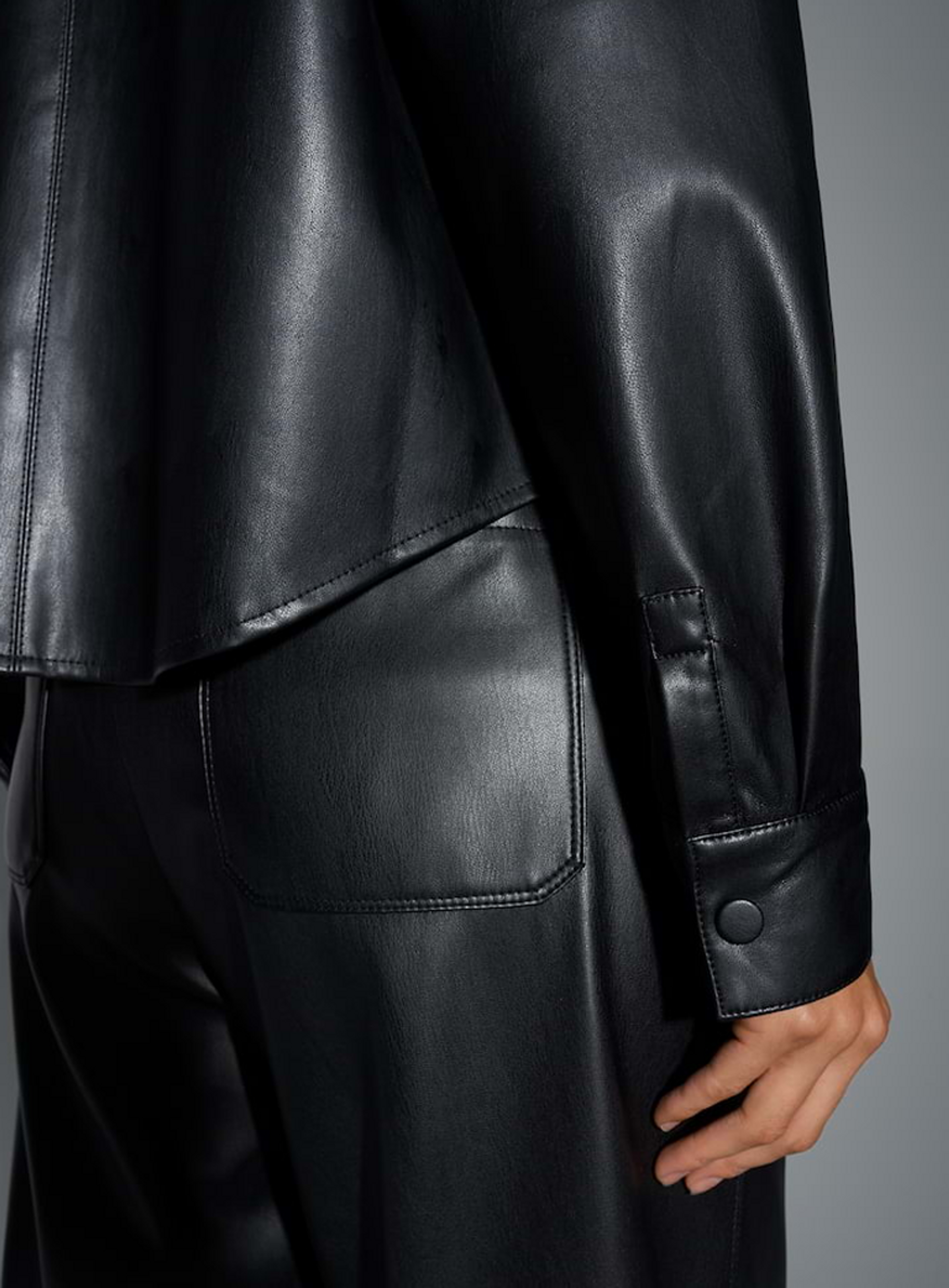 Deze soepele blouse van het merk Opus van imitatieleer is een veelzijdige hybride en kan zowel klassiek gesloten als open als overshirt gedragen worden. Het boterzachte gevoel en de strakke, moderne look maken het de ideale metgezel voor een vrouwelijke, ongecompliceerde alledaagse look.