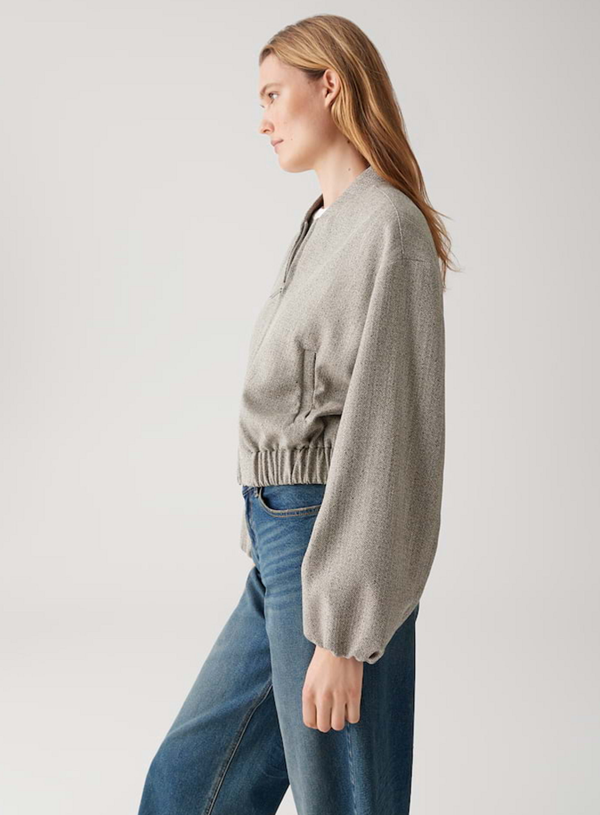 Dit blousonjasje van het merk Opus met ballonmouwen en een elastische zoom voegt moeiteloze vrouwelijke nonchalance toe aan elke stadslook. Het fijne visgraatpatroon maakt het een blikvanger voor ontspannen outfits van ’s ochtends bij de koffie tot na het werk.