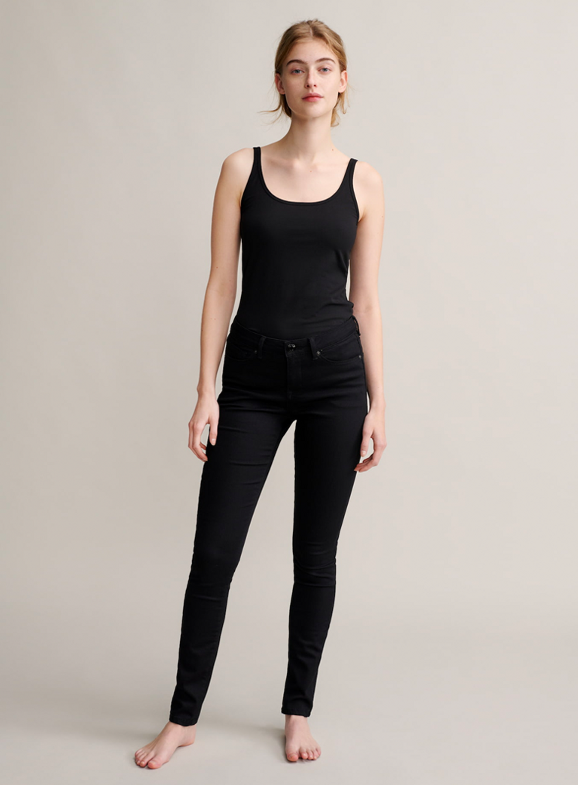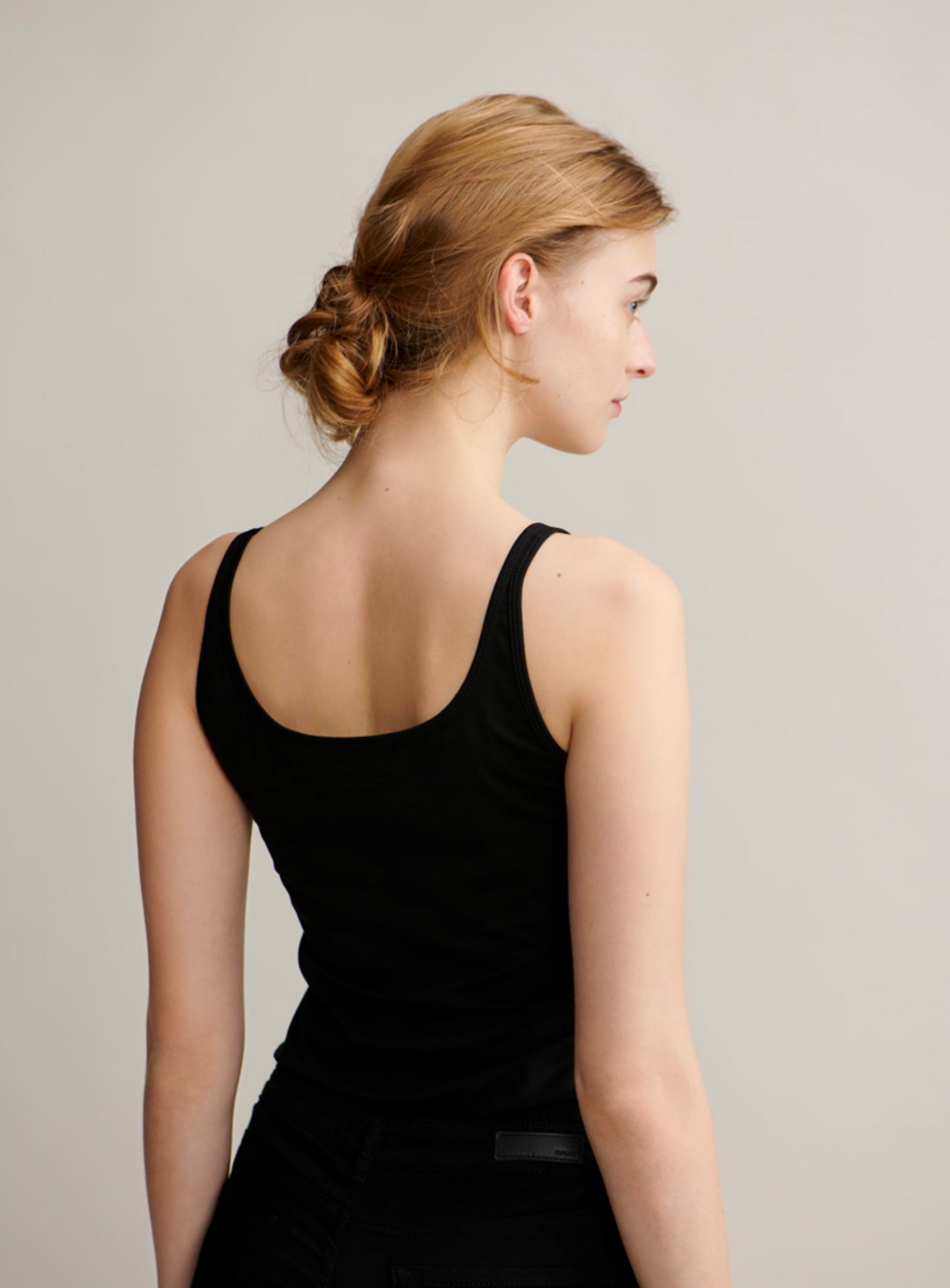 De tanktop van comfortabele katoenen jersey. De dunne bandjes en de iets langgerekte vorm zorgen voor een optimale pasvorm. Dankzij het elasthaangehalte sluit de top niet alleen heerlijk aan op het lichaam, maar behoudt hij ook zijn vorm.