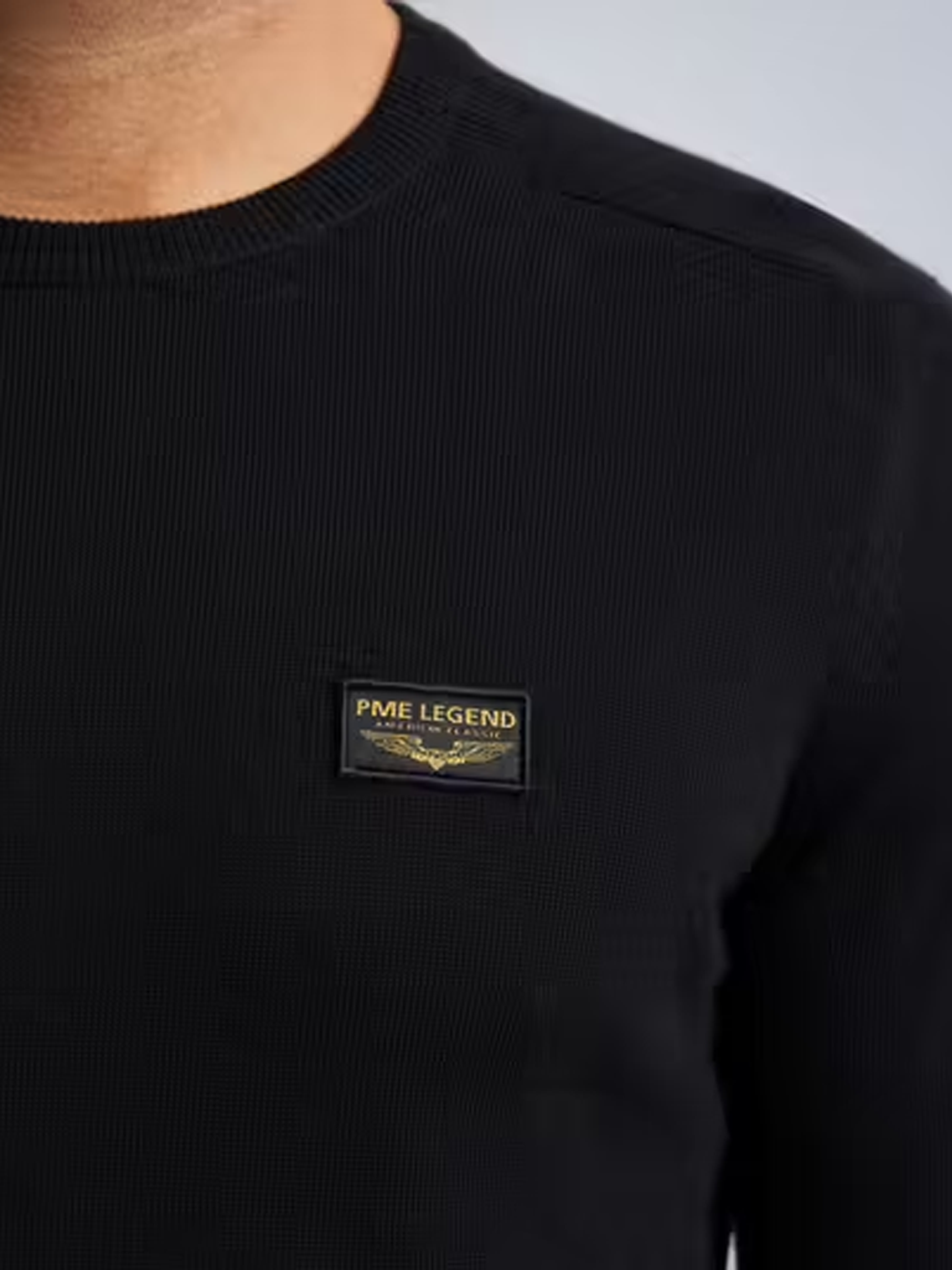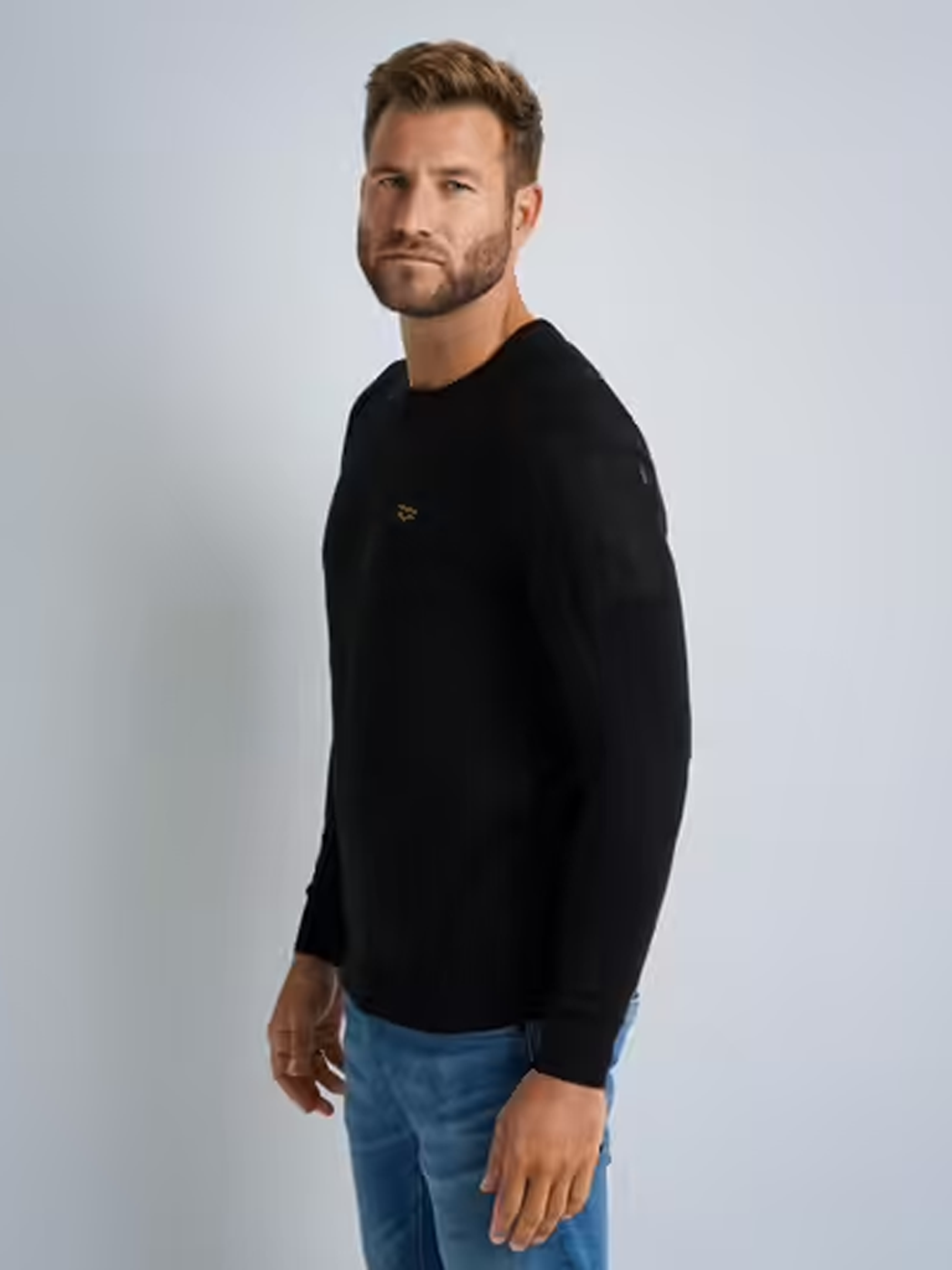 Deze trui met een ronde hals is voorzien van een authentieke branding op de borst en is afgewerkt met geribde boorden. Het garen is gemaakt van een langere katoenvezel en is iets extra getwist, waardoor de stof mooi glad is.