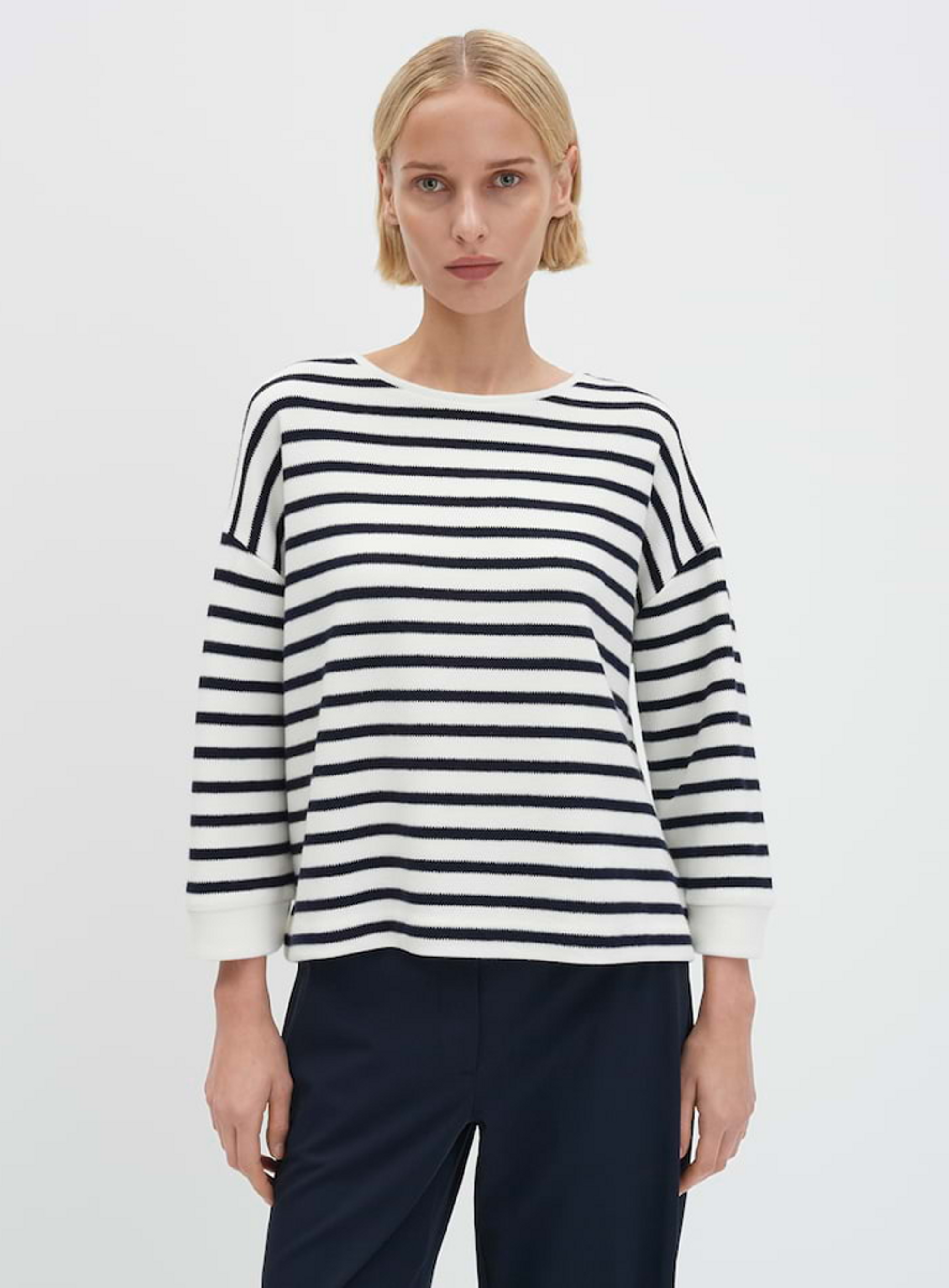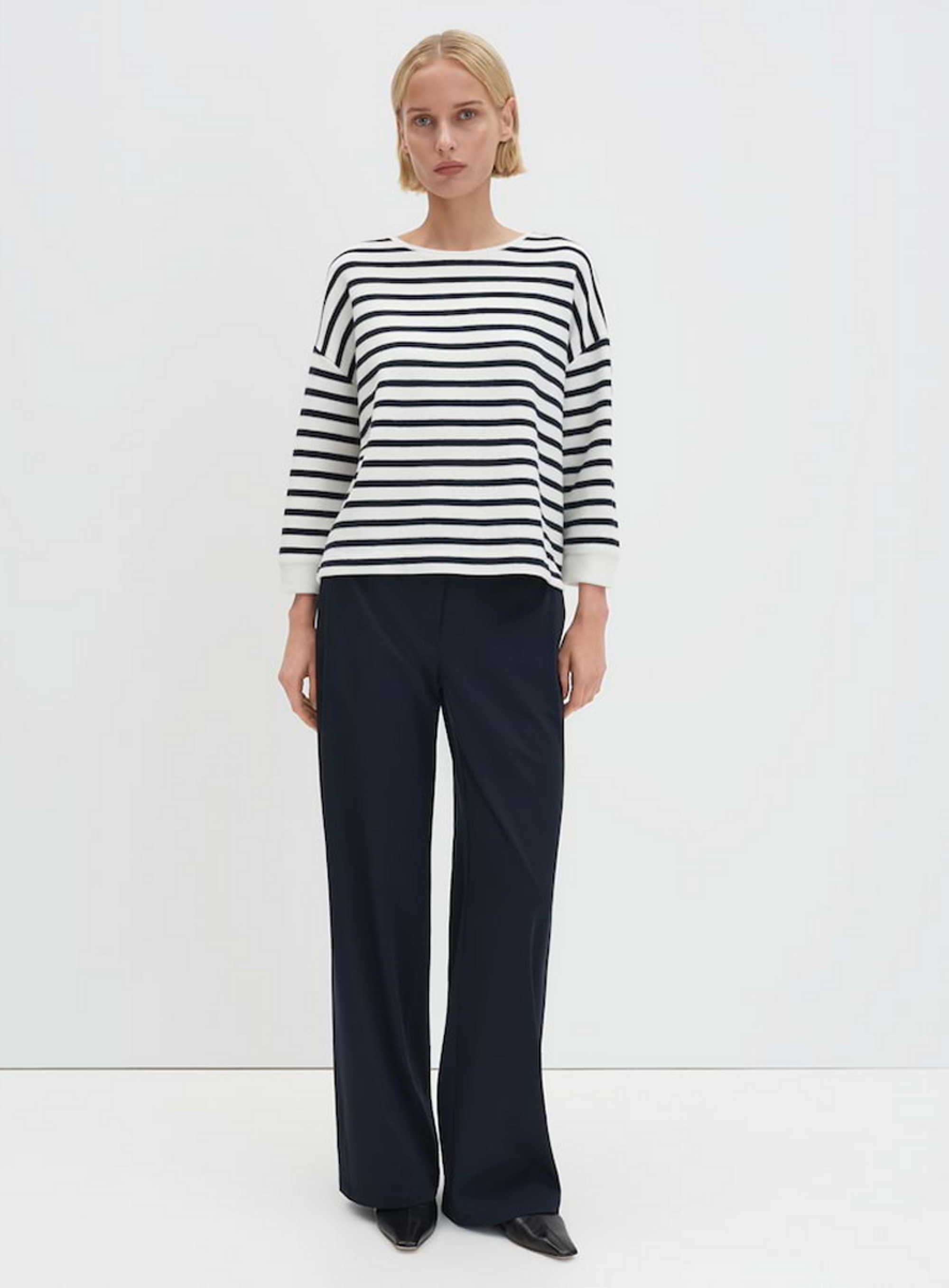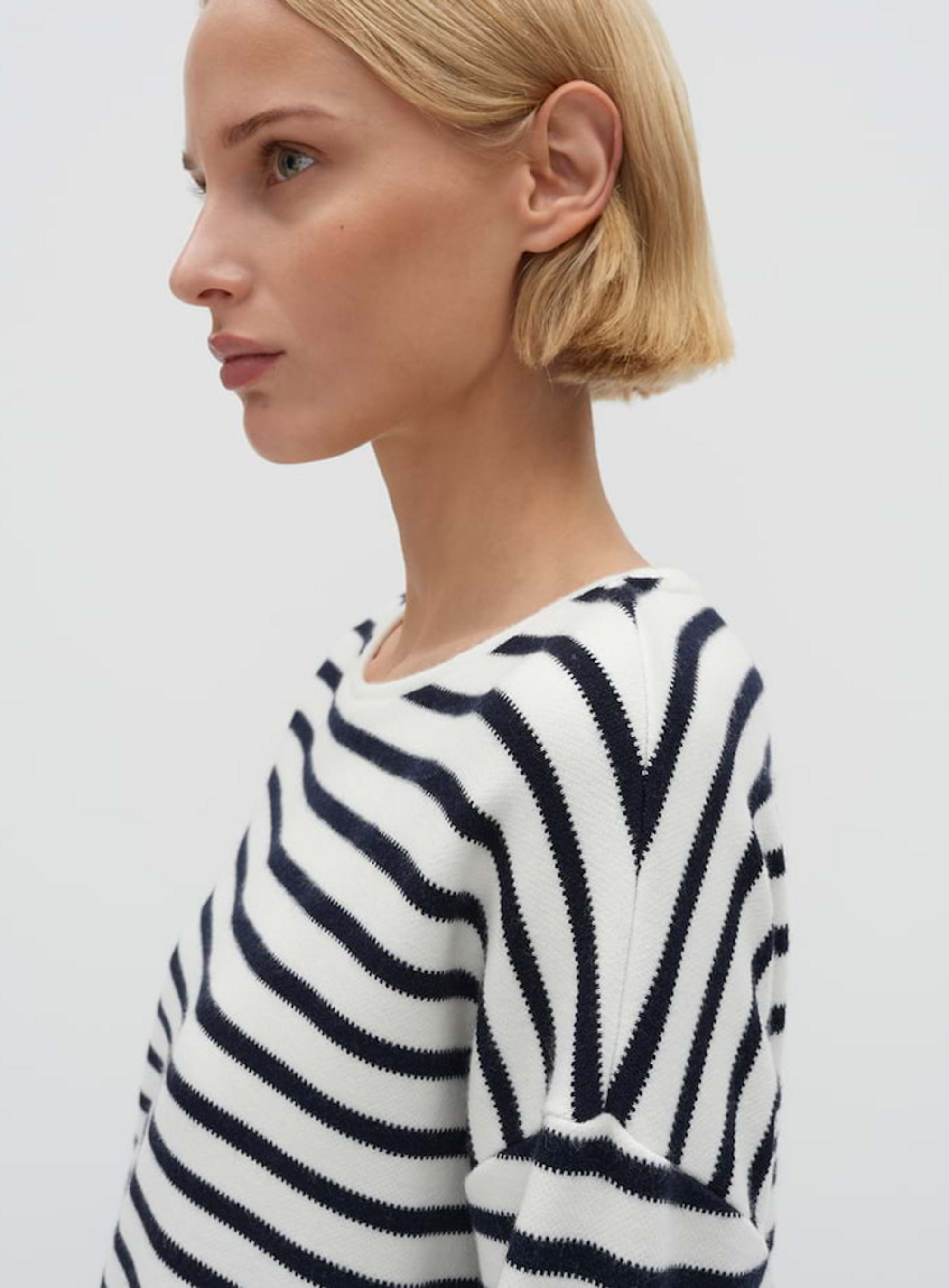 De fijn gestreepte Uleno trui van het merk Someday in gebreide look heeft contrastkleurige manchetten en voelt aangenaam zacht aan. Een veelzijdige favoriet die moeiteloos gecombineerd kan worden met jeans of clean met een broek met wijde broekspijpen.
