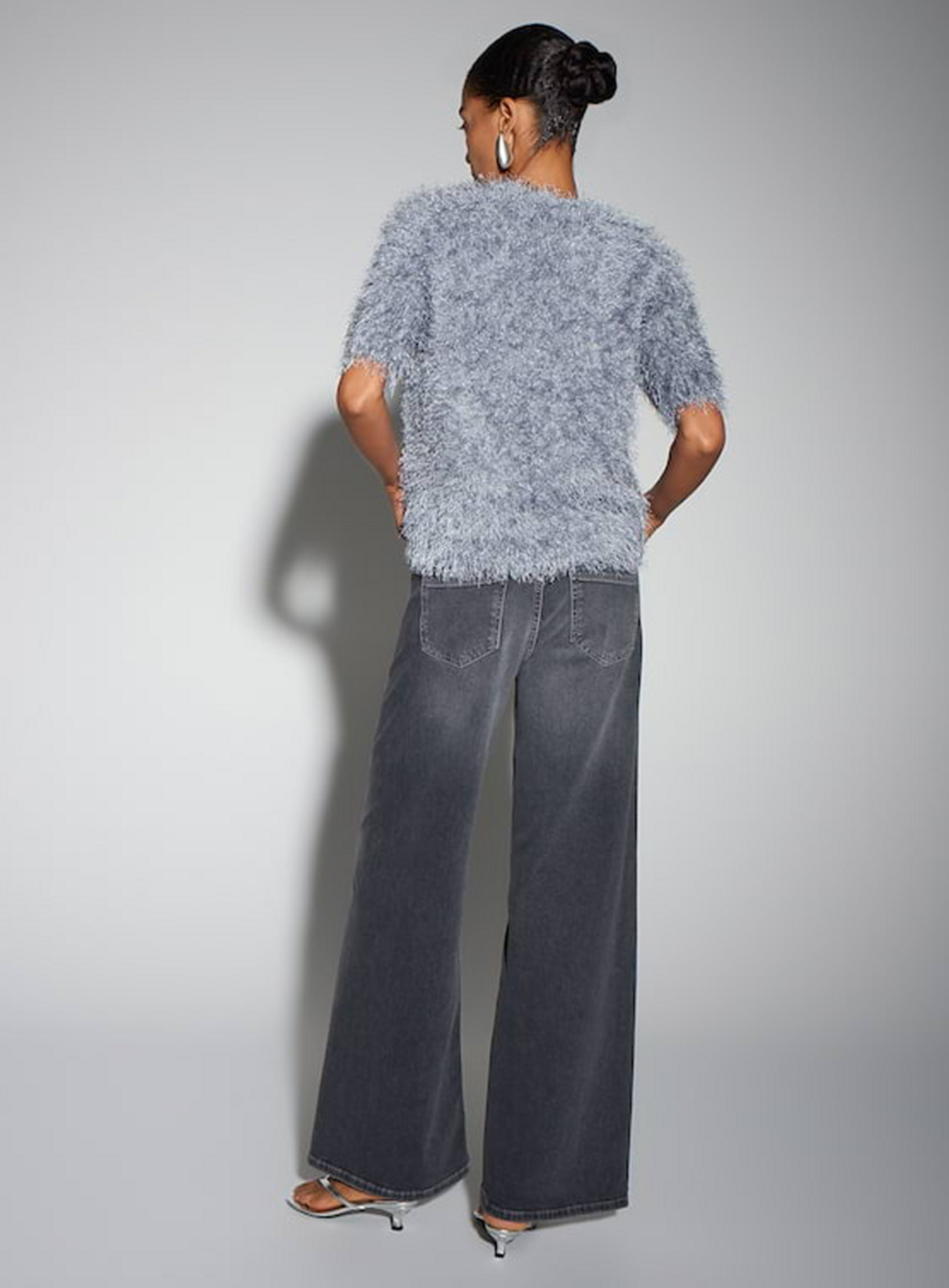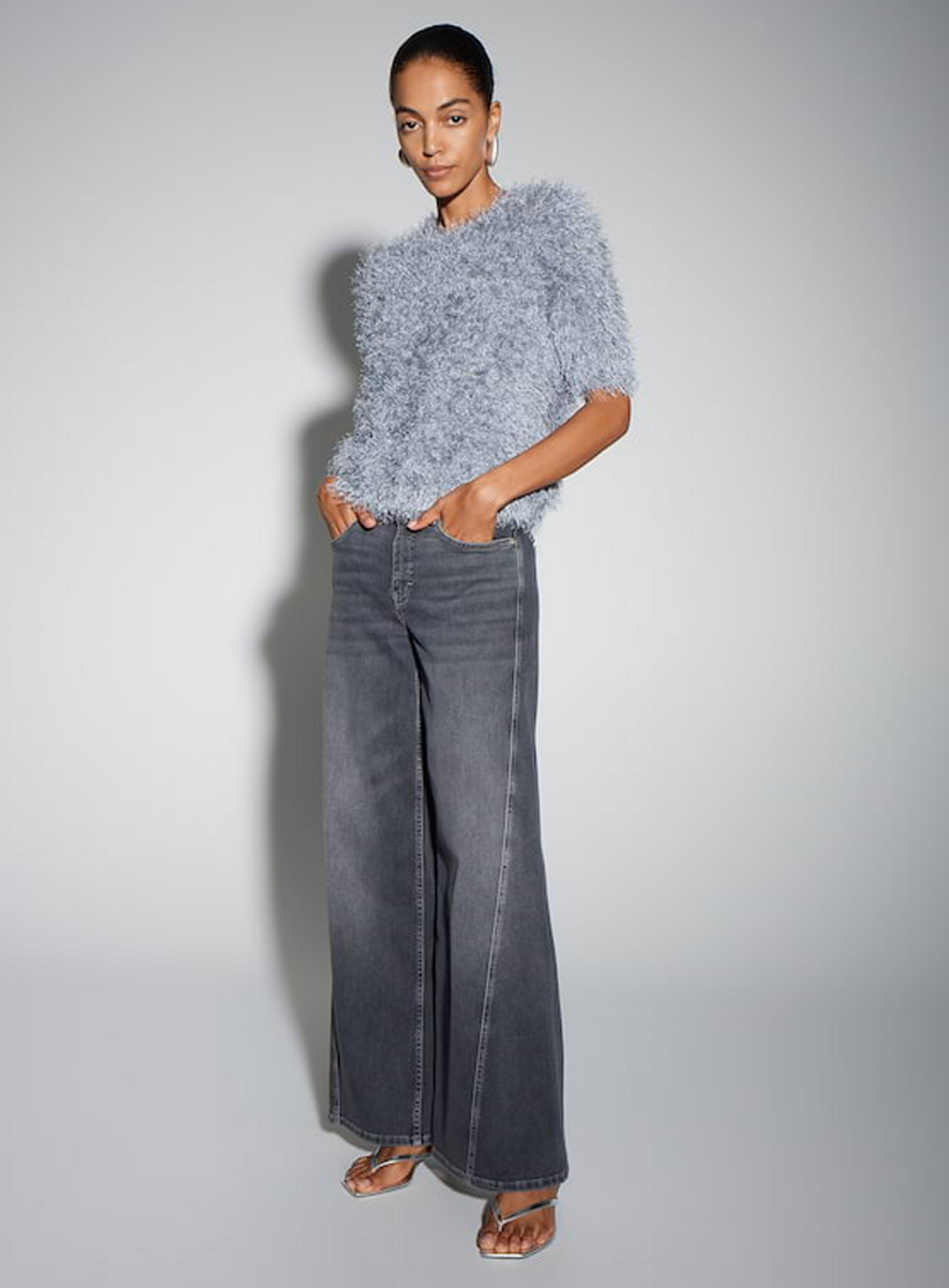 Het volumineuze, harige breisel met korte mouwen van het mekr Someday geeft een onweerstaanbare feel-good factor en is een echte blikvanger dankzij het garen met kosmisch glanseffect. Een stijl die gevoel voor trends en comfort op een unieke manier combineert.