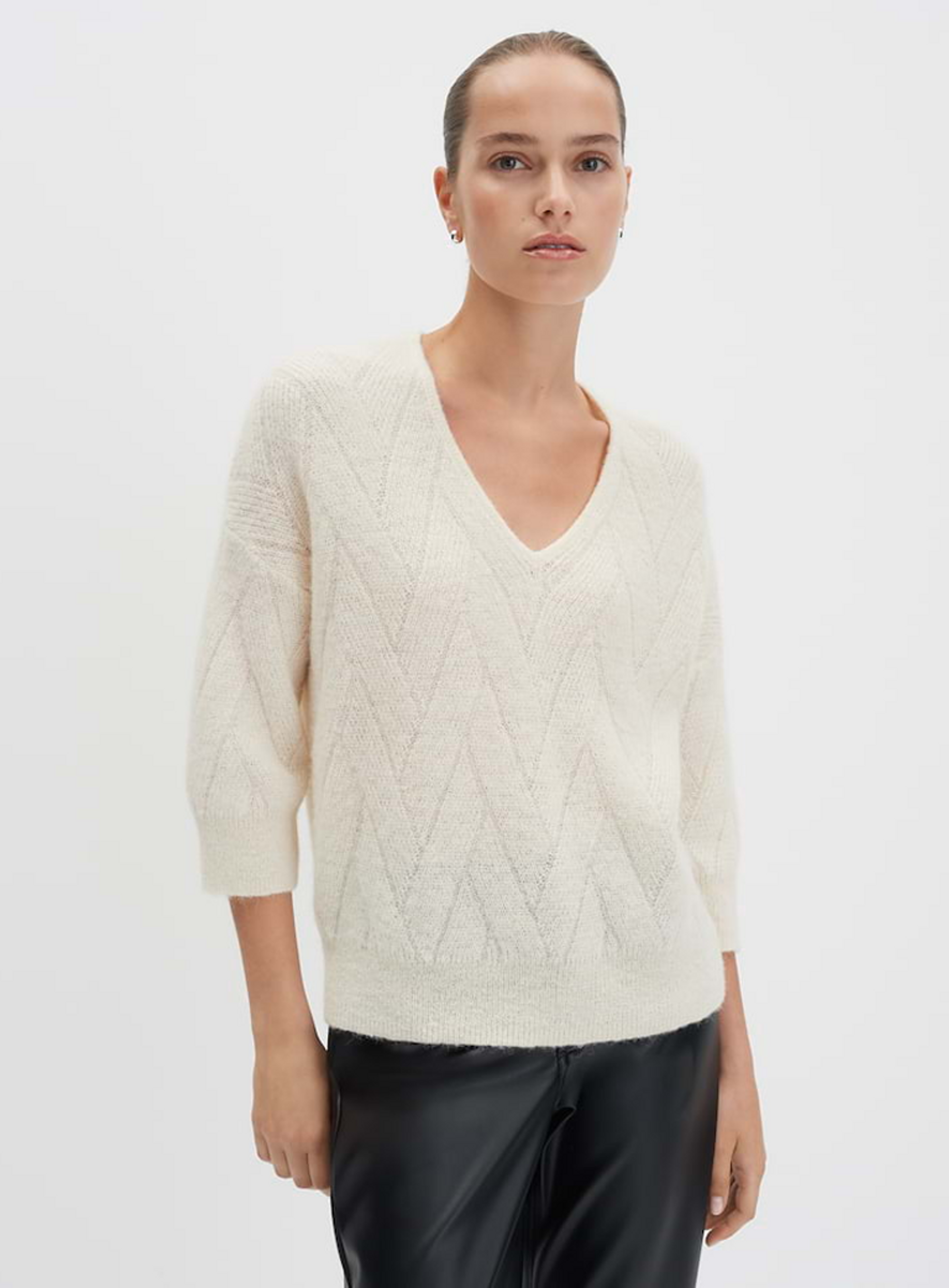 Deze fijn gebreide trui van Someday met een modern kabelpatroon combineert vrouwelijke elegantie met luchtig comfort. Dankzij het zachte garen voelt hij de hele dag prettig aan tegen de huid en kan hij op verschillende manieren worden gecombineerd.