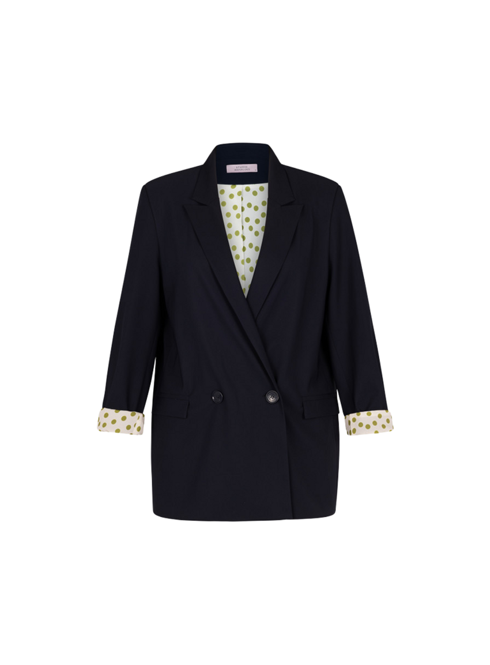 De Dokus blazer van Studio Anneloes combineert een stoere oversized fit met verfijnde details. De voering met stippen geeft deze blazer een verrassende twist, vooral wanneer je de mouwen nonchalant omslaat