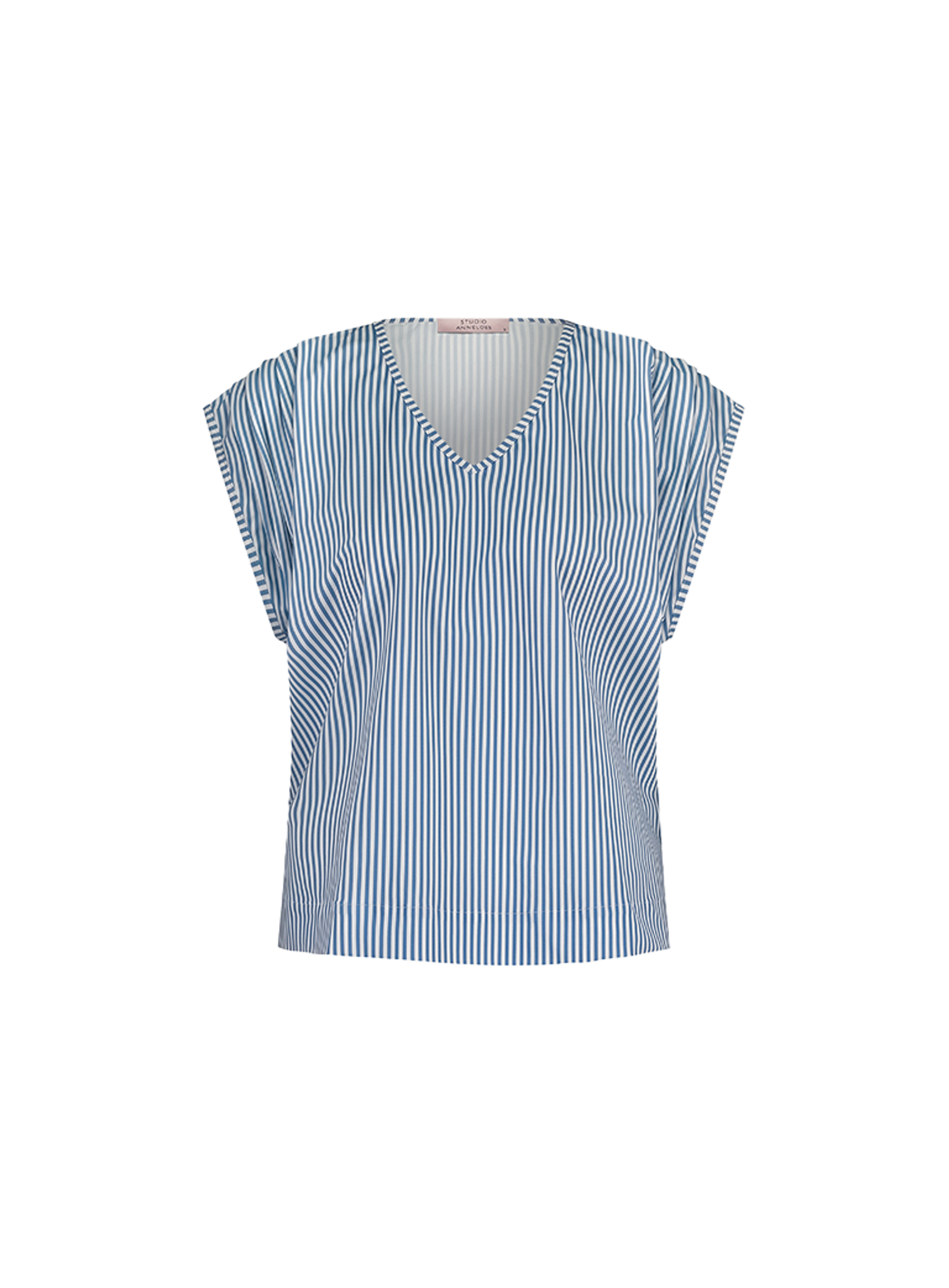De Leonie small stripe top van Studio Anneloes is een frisse toevoeging aan je zomergarderobe. De klassieke streep geeft dit item een tijdloze look, terwijl de vrouwelijke details zorgen voor een moderne twist. Dankzij de mouwloze snit, V-hals en verfijnde plooien heeft de top een elegante, luchtige uitstraling.