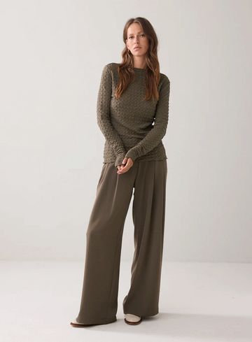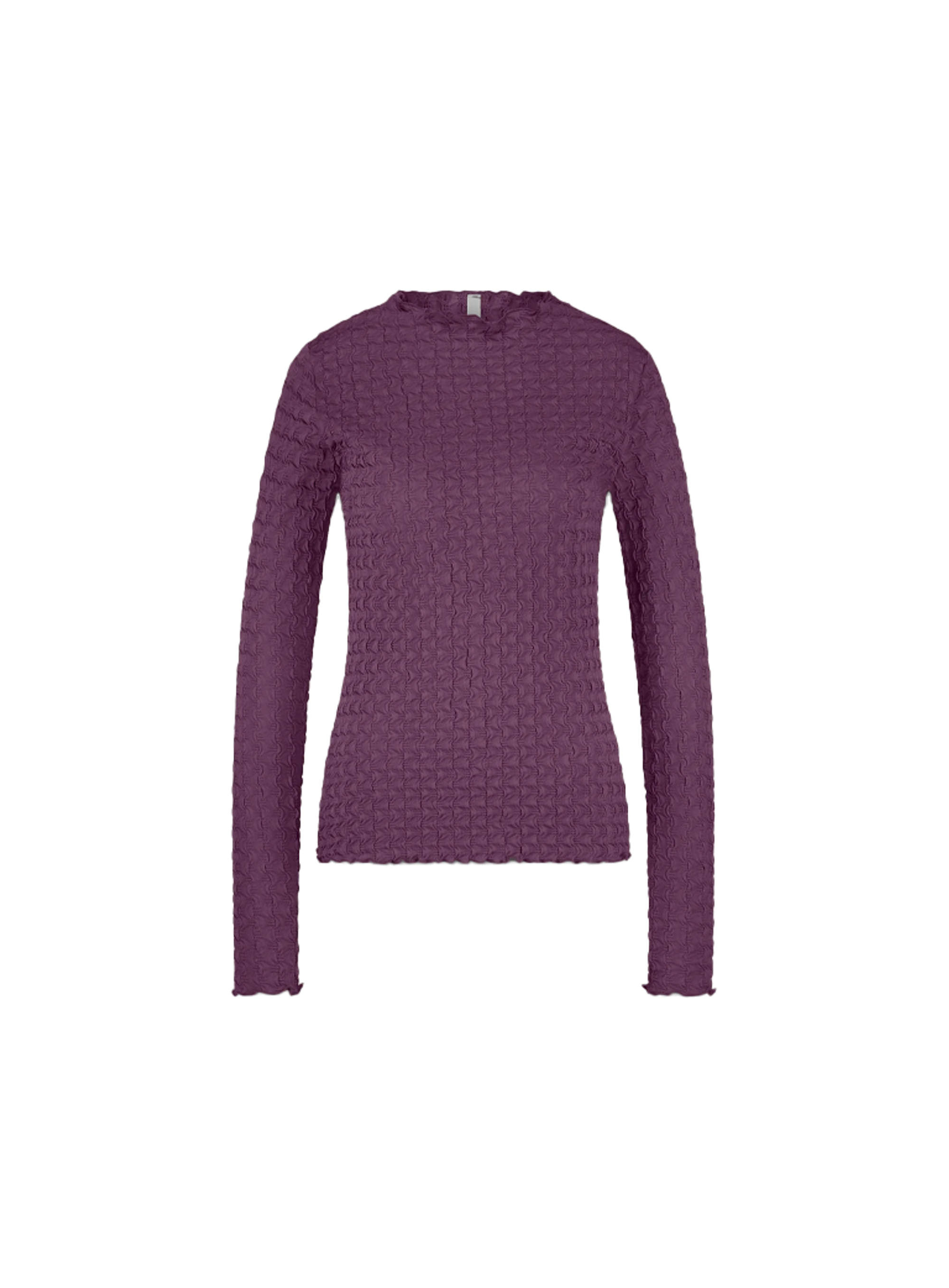 Top van het merk Summum. De mesh top heeft een voelbaar patroon, lange mouwen, een hoge ronde hals en een aangesloten pasvorm. Leuk te combineren onder een blazer of op een jeans.