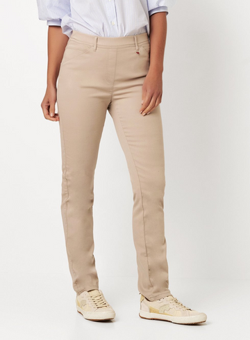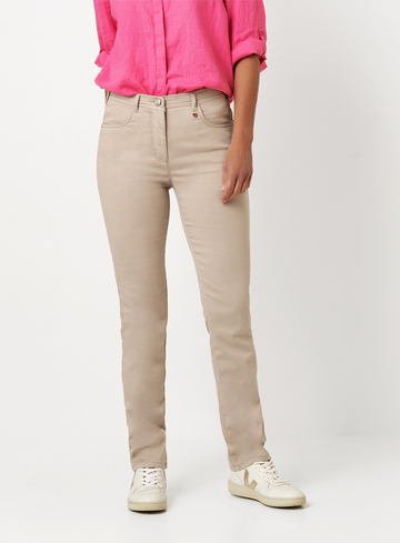 Slank, zacht en subtiel verfijnd. Deze broek van Toni brengt moderne nonchalance in je garderobe. Het slim-fit silhouet flatteert de figuur, terwijl de zachte stretchstof zorgt voor comfort en bewegingsvrijheid gedurende de hele dag. Een charmant detail: delicate strassversieringen op de achterzakken geven een vrouwelijke sparkle. Deze stijl zit soepel en comfortabel – perfect voor dagelijkse outfits met een vleugje glans.
