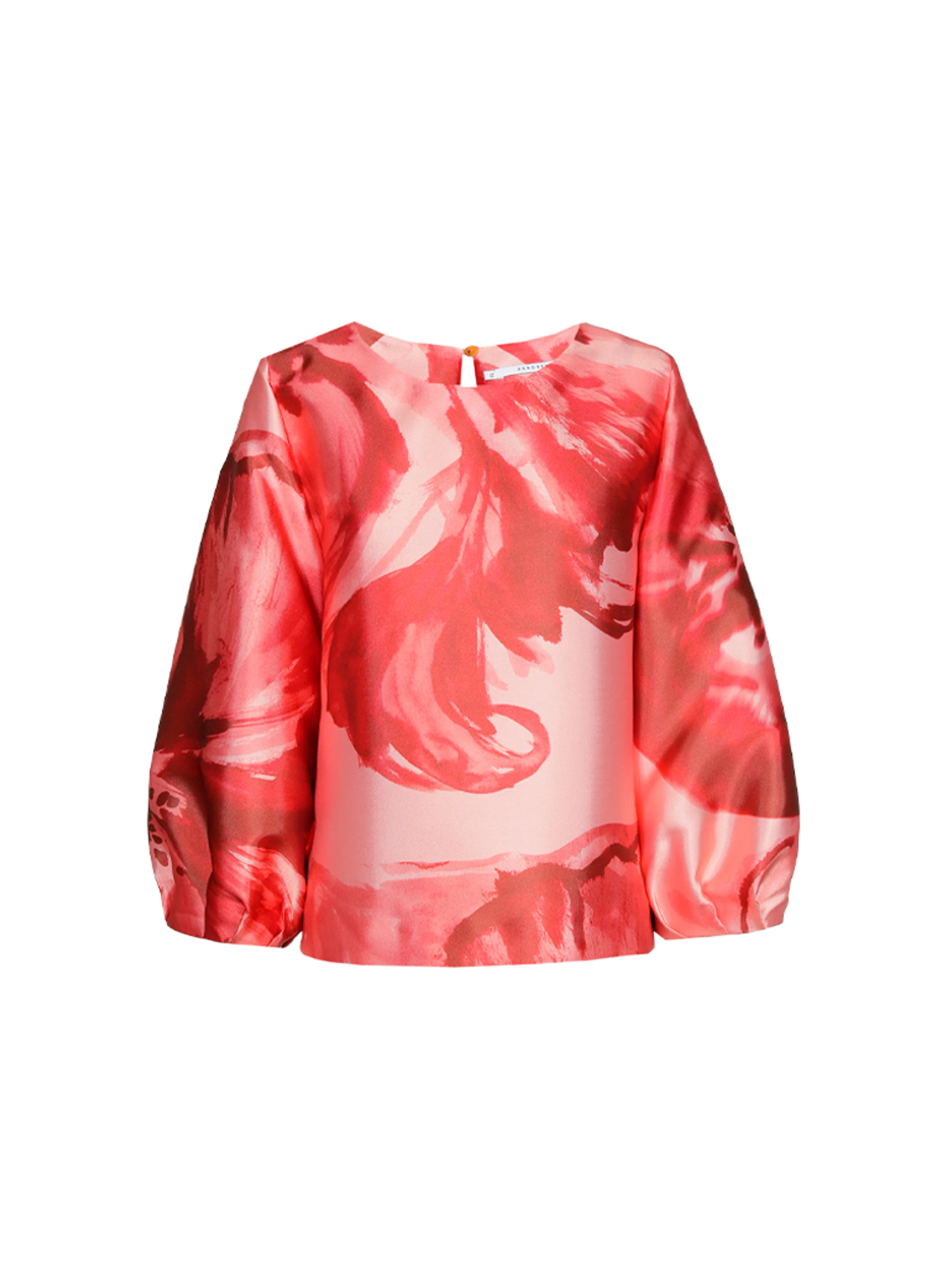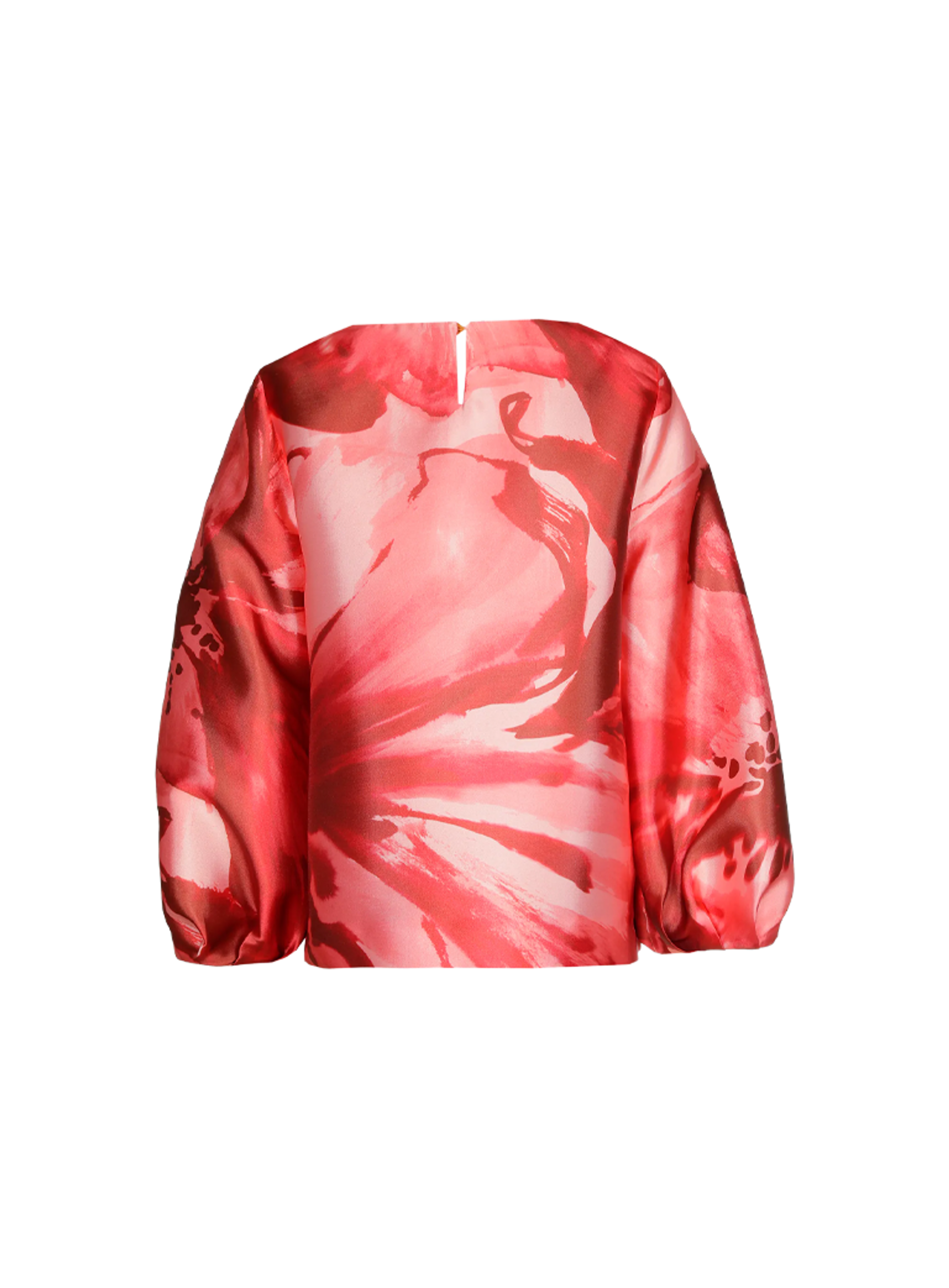 Blouse van het merk Xandres, met bloemenprint, satijnlook en feestelijke ballonmouwen. De blouse heeft een eenvoudige knoopsluiting in de rug.