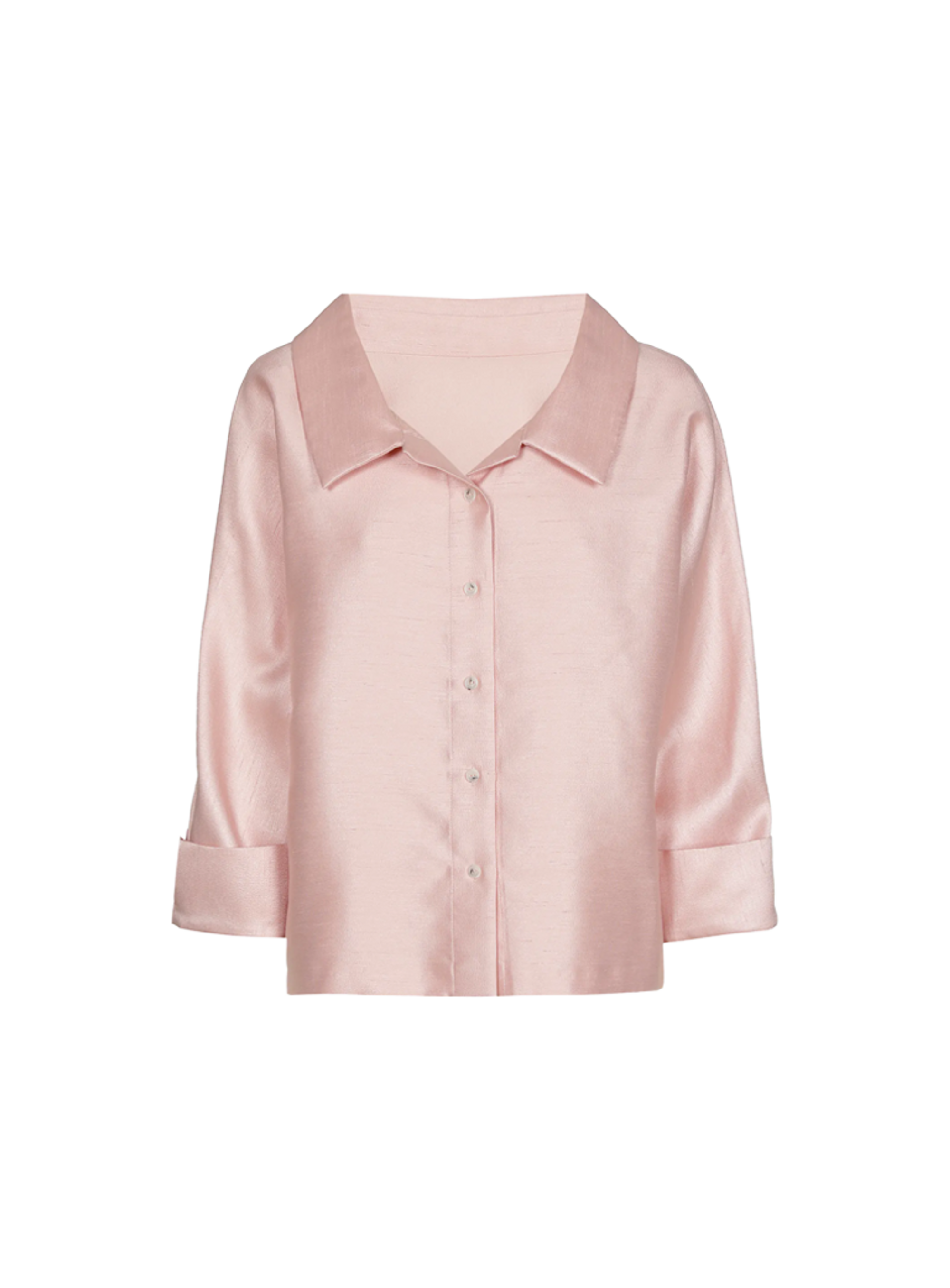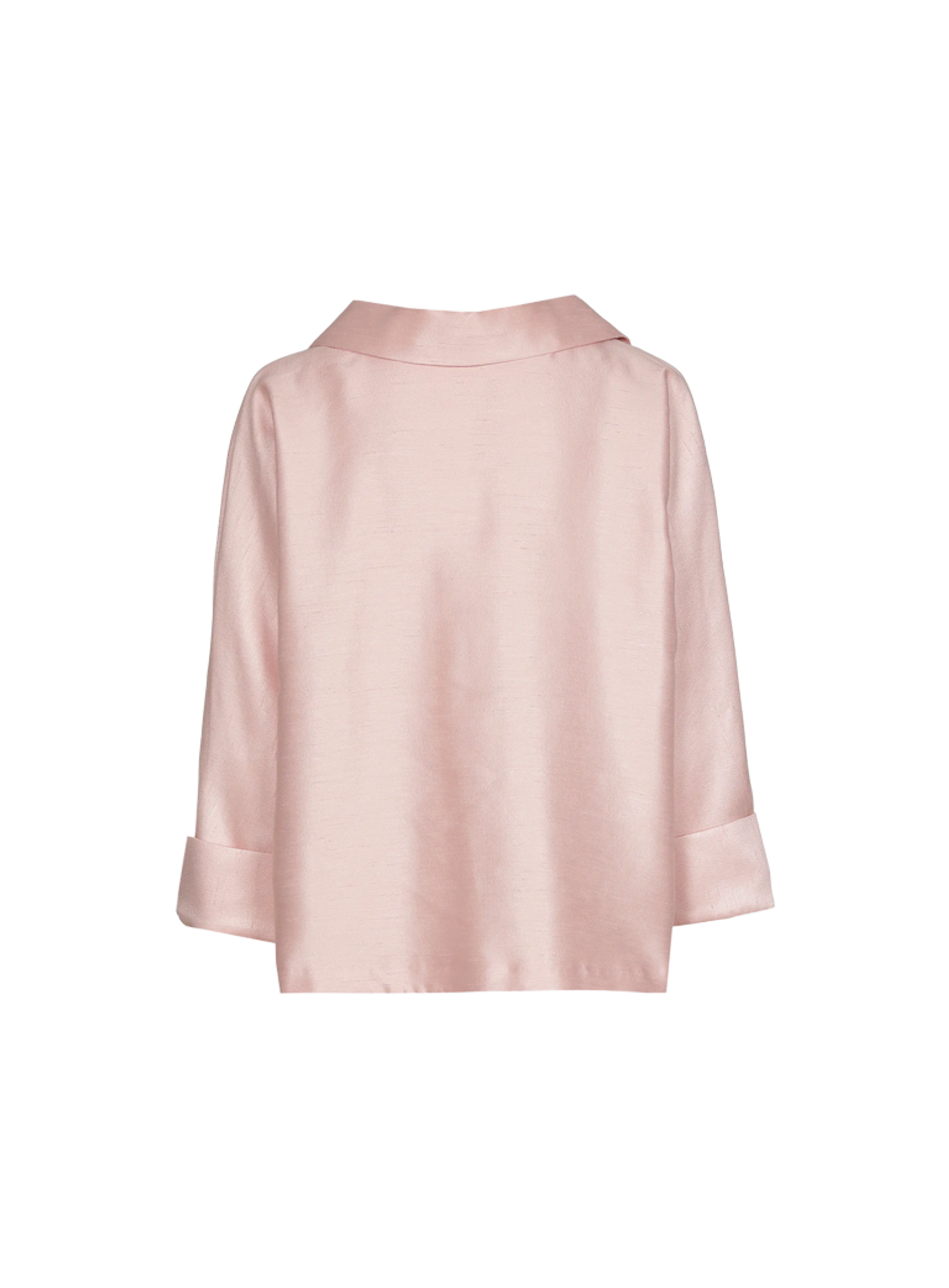 Blouse van het merk Xandres. Deze blouse komt met een twist. Je kan de knoopsluiting vooraan of achteraan dragen. De zijden look straalt elegante luxe uit en tilt elke outfit meteen naar een hoger niveau.