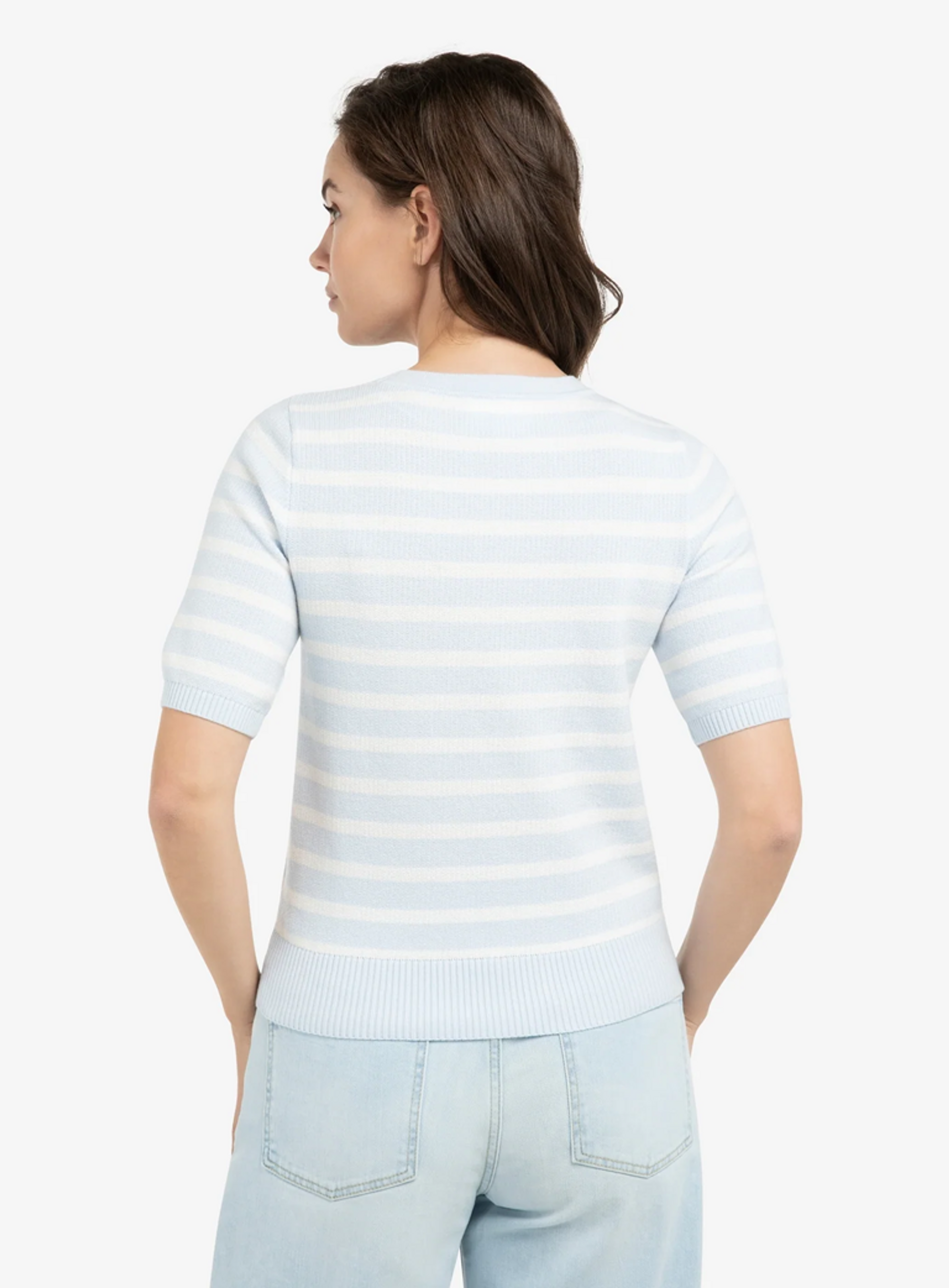 Deze fijngebreide trui van Yaya is uitgevoerd met korte mouwen, een ronde hals en een normale pasvorm. Het model is voorzien van een tijdloos streeppatroon in zachte kleuren en heeft ribboorden aan de mouwen en zoom. De subtiele textuur van het breisel geeft een verfijnde touch. Perfect voor een frisse en casual uitstraling.