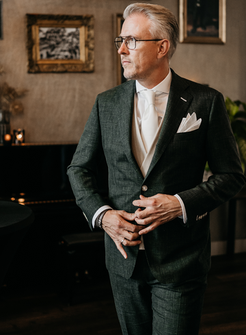 Wij bieden uniek maatwerk. Ontwerp uw eigen kostuum door zelf de stof, voering, details en pasvorm te kiezen, helemaal afgestemd op uw persoonlijke stijl. Al onze pakken zijn vervaardigd van 100% zuiver scheerwol. Met uitzondering van enkele luxere combinaties zoals wol/zijde of wol/mohair voor een nog verfijndere uitstraling.